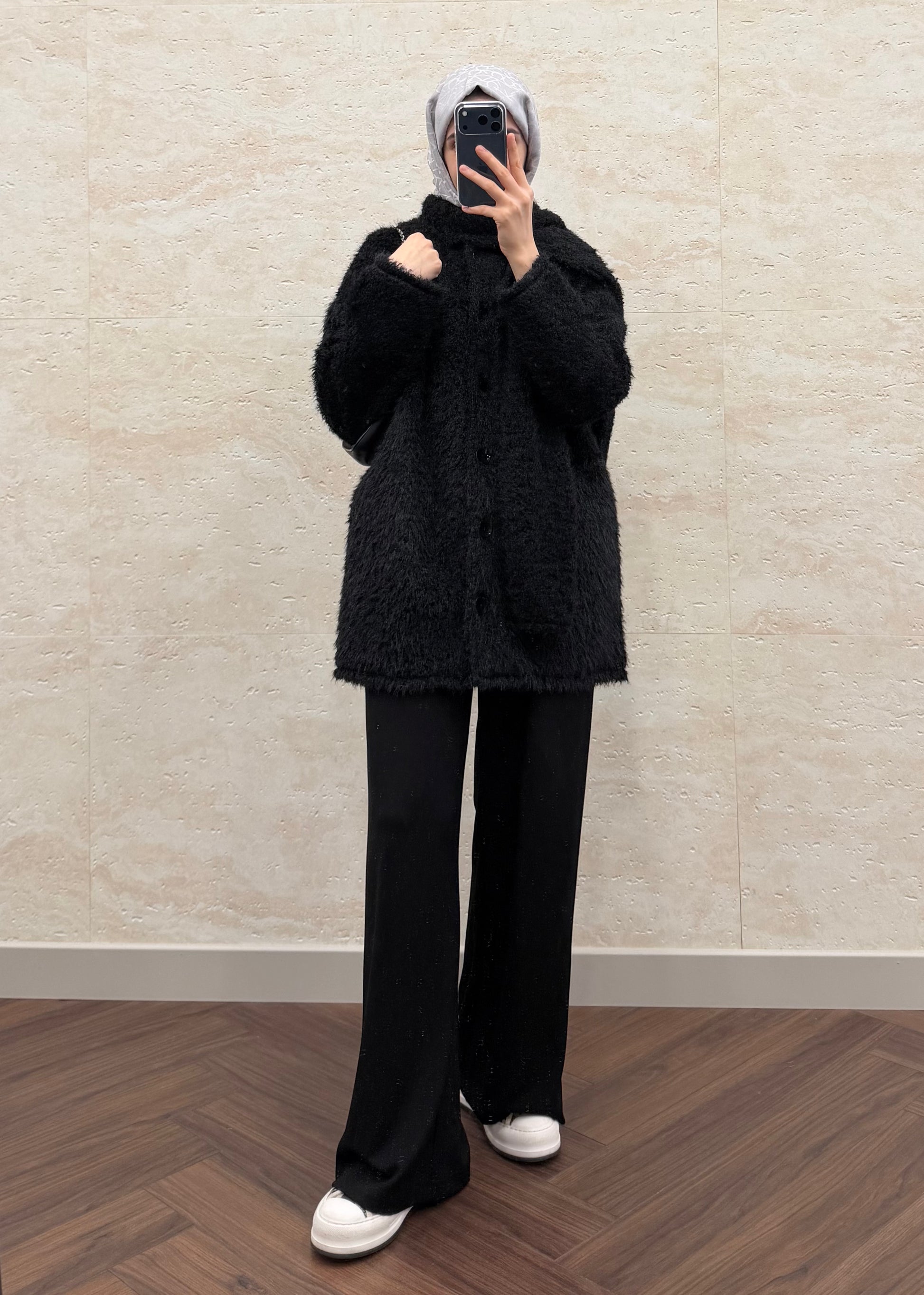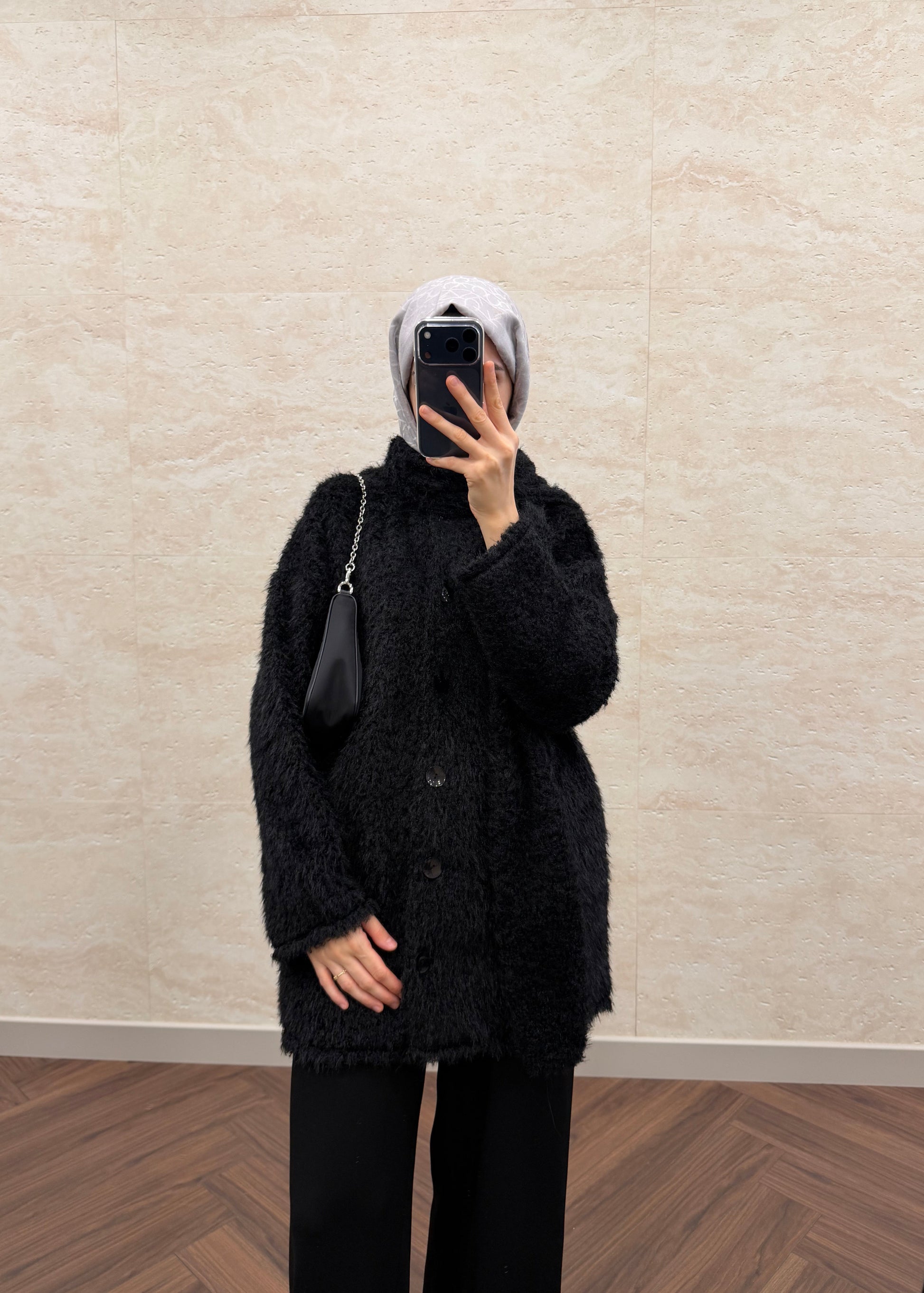 Yumuşacık dokusuyla sıcacık bir stil sunan seyyar atkı detaylı kürk ceketimiz, soğuk günlerde şıklık ve konforu bir araya getiriyor. Kürk kumaşı sayesinde gün boyu sıcak tutarken, çıkarılabilir atkı detayıyla kullanım kolaylığı ve farklı kombin seçenekleri sunar.