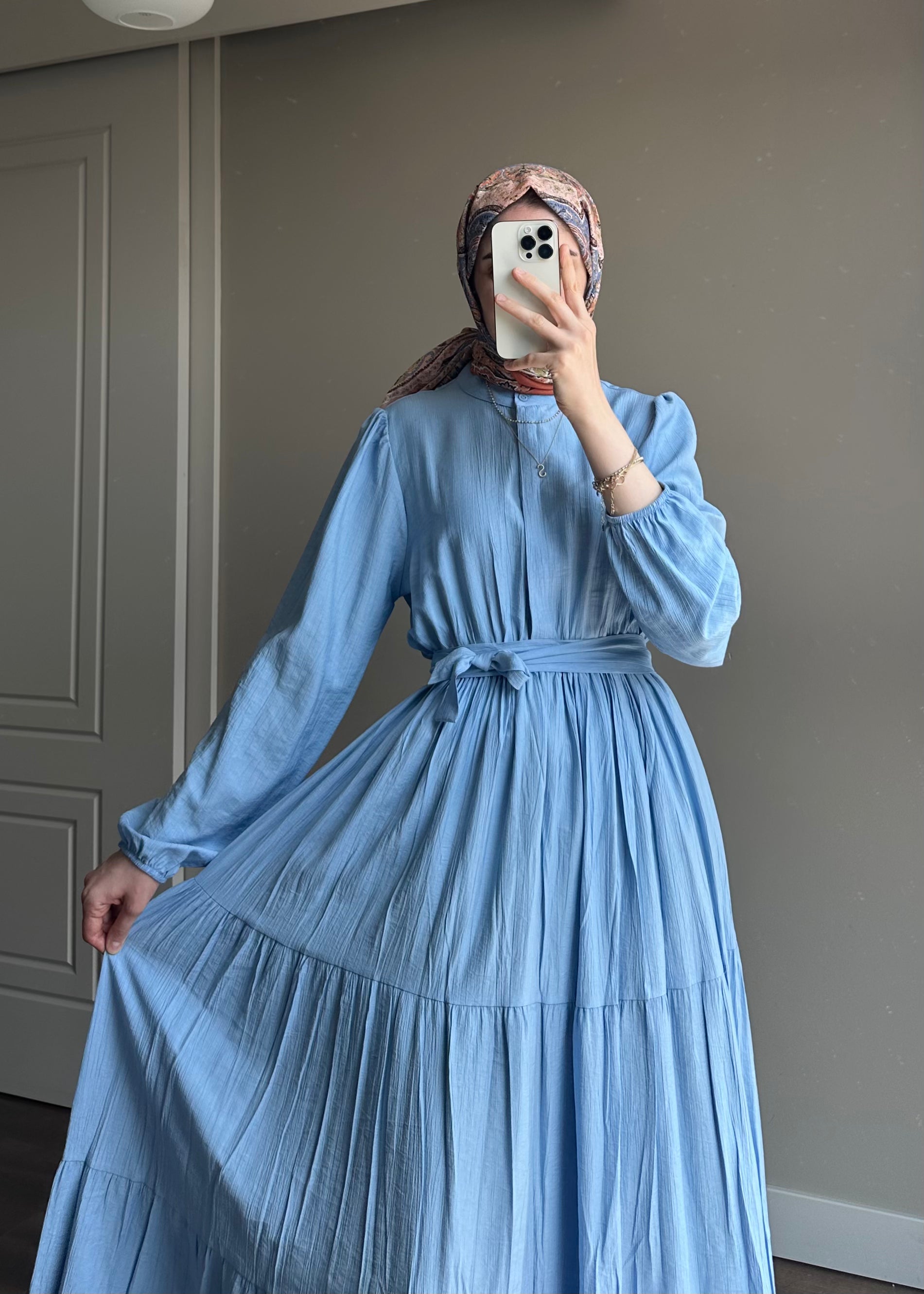 BELİ LASTİKLİ ÇİLEK ELBİSE BEBE MAVİ