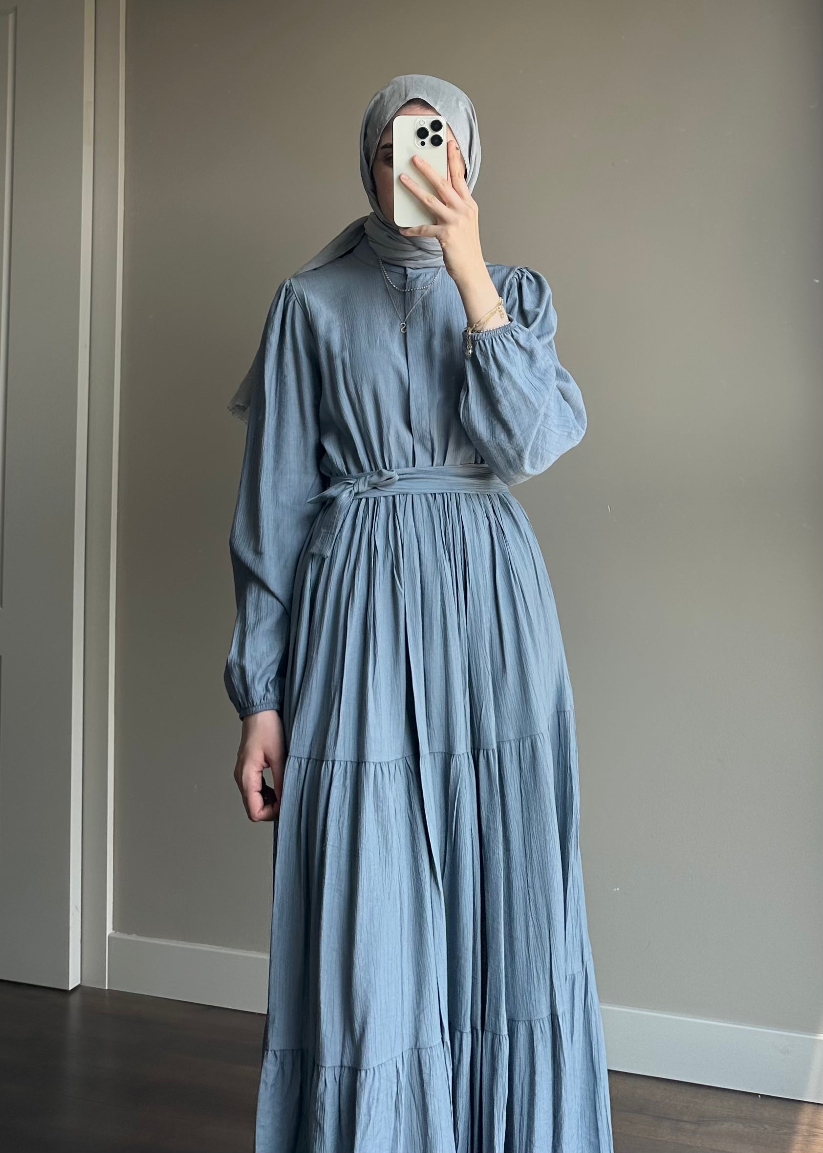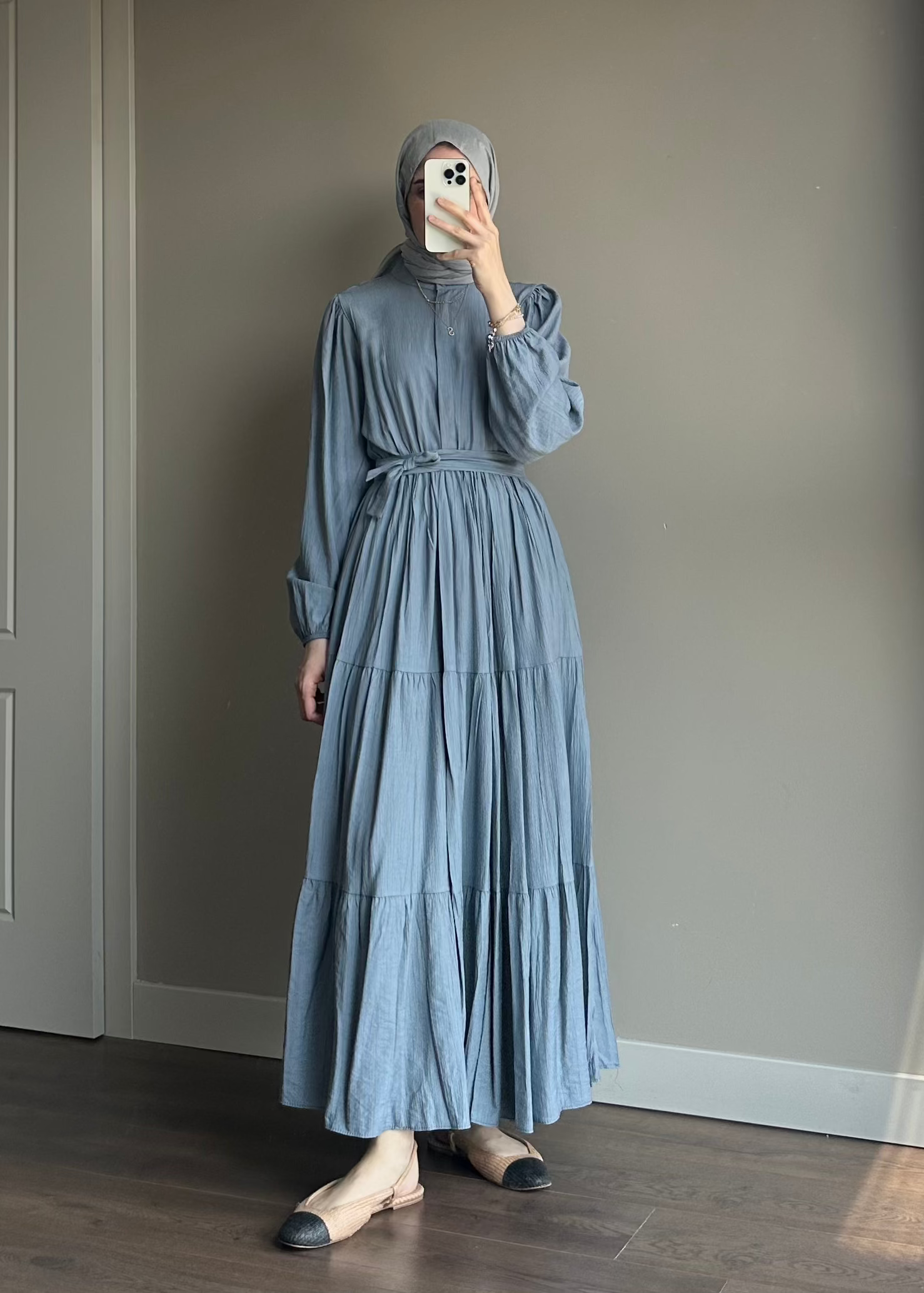 BELİ LASTİKLİ ÇİLEK ELBİSE GRİ