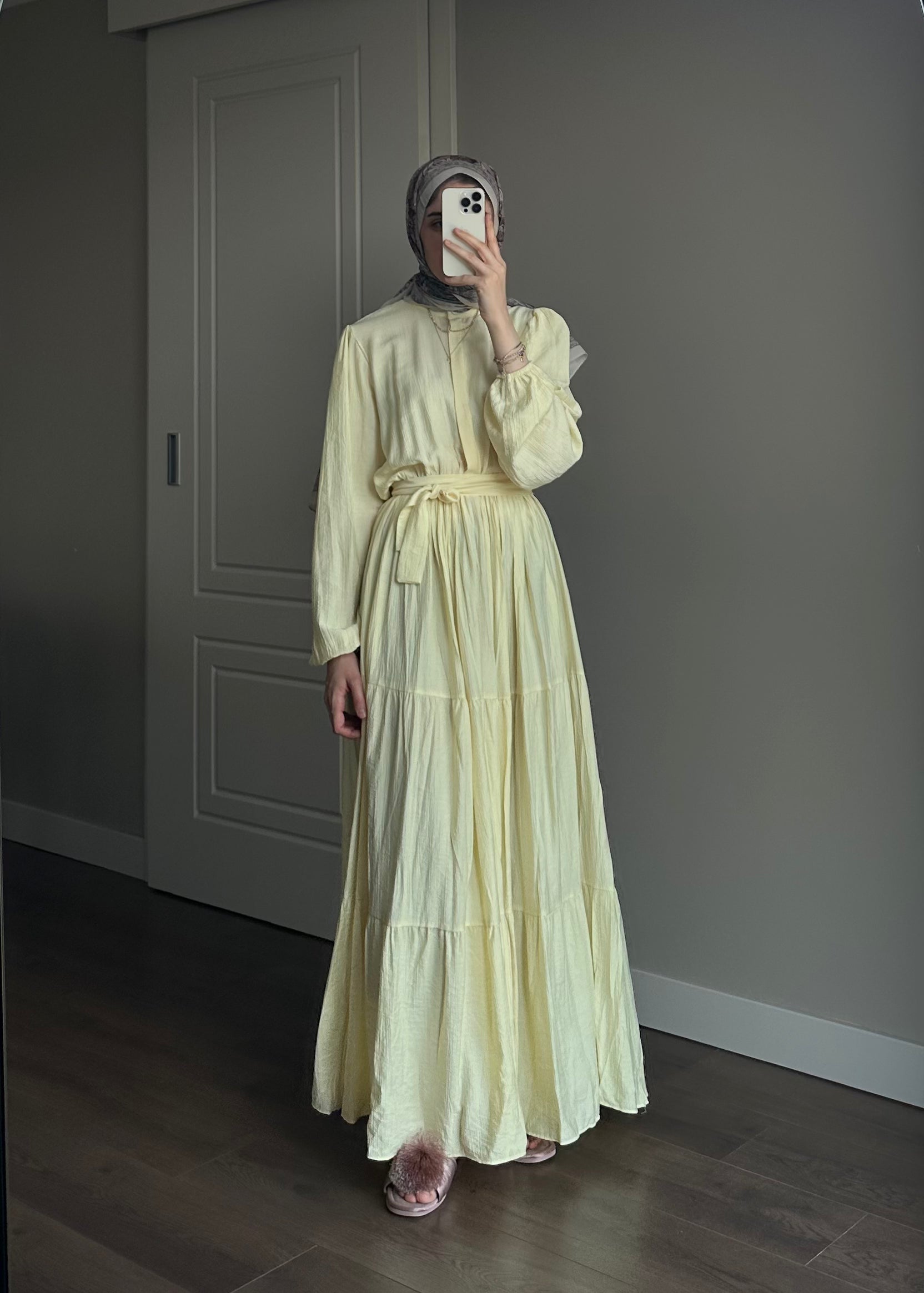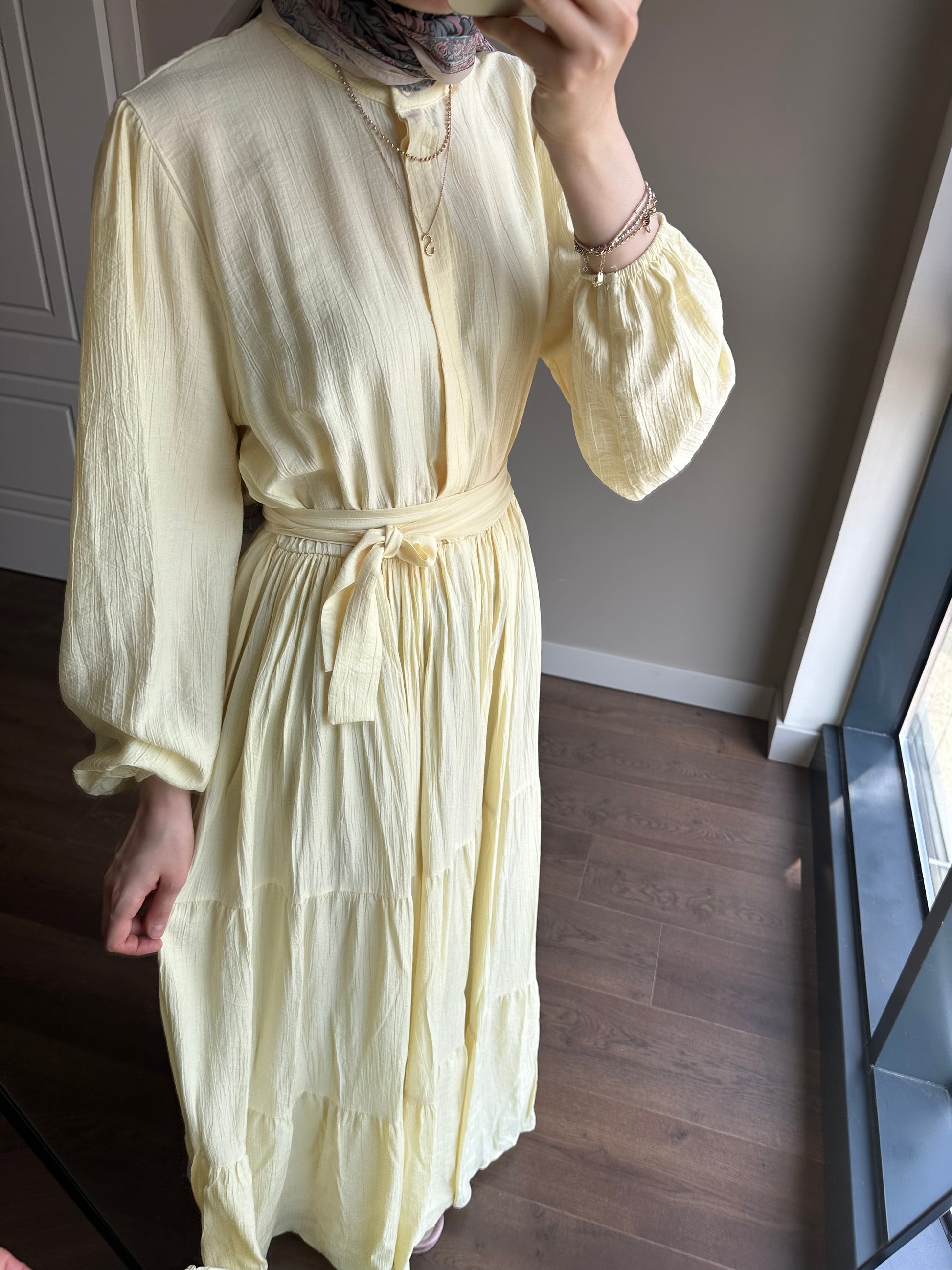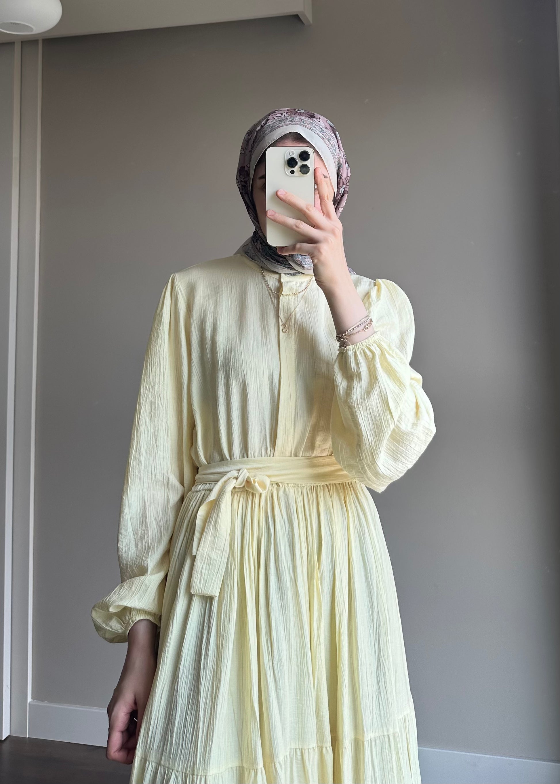 BELİ LASTİKLİ ÇİLEK ELBİSE SARI