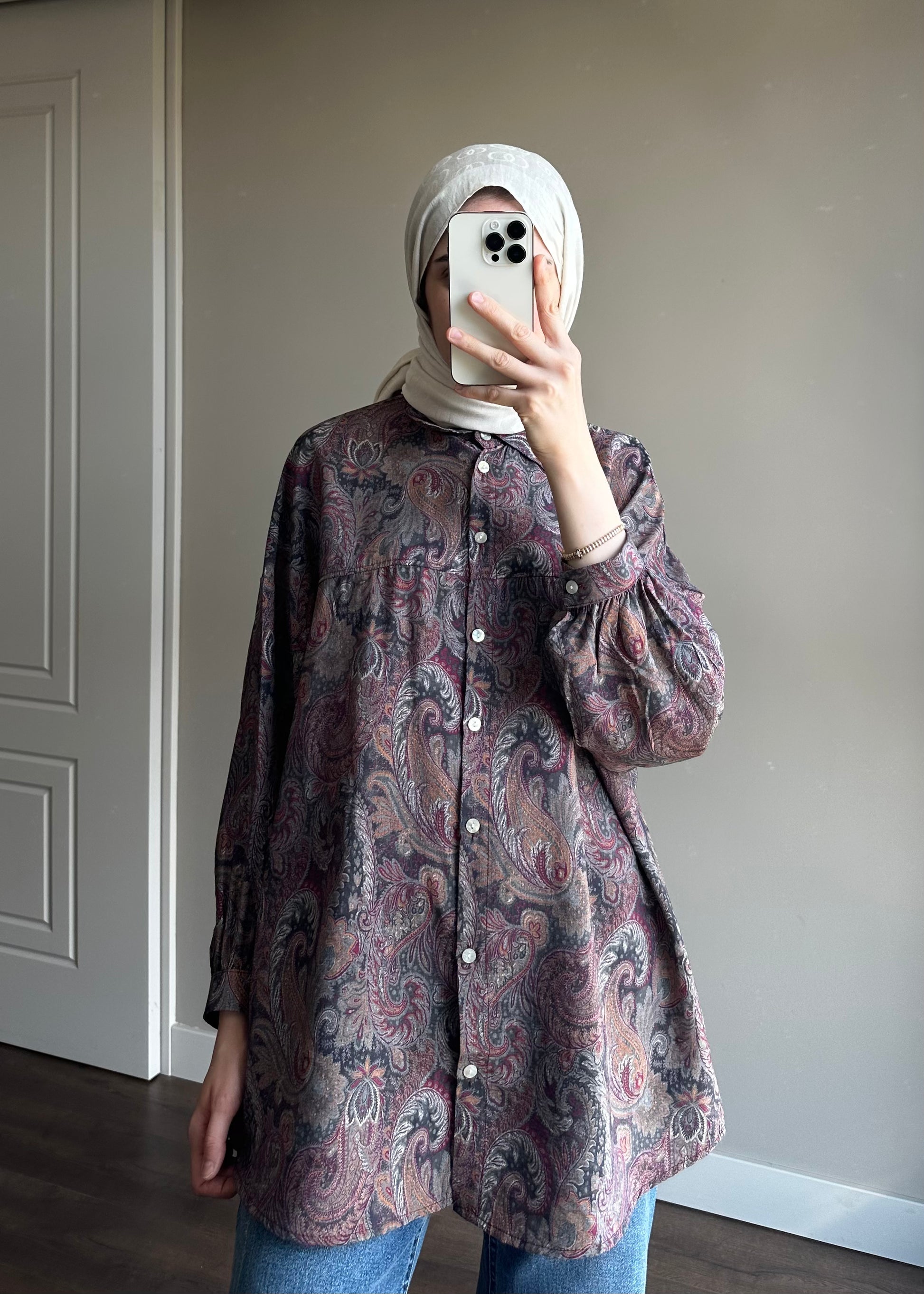 ETNİK DESENLİ GÖMLEK ANTRASİT