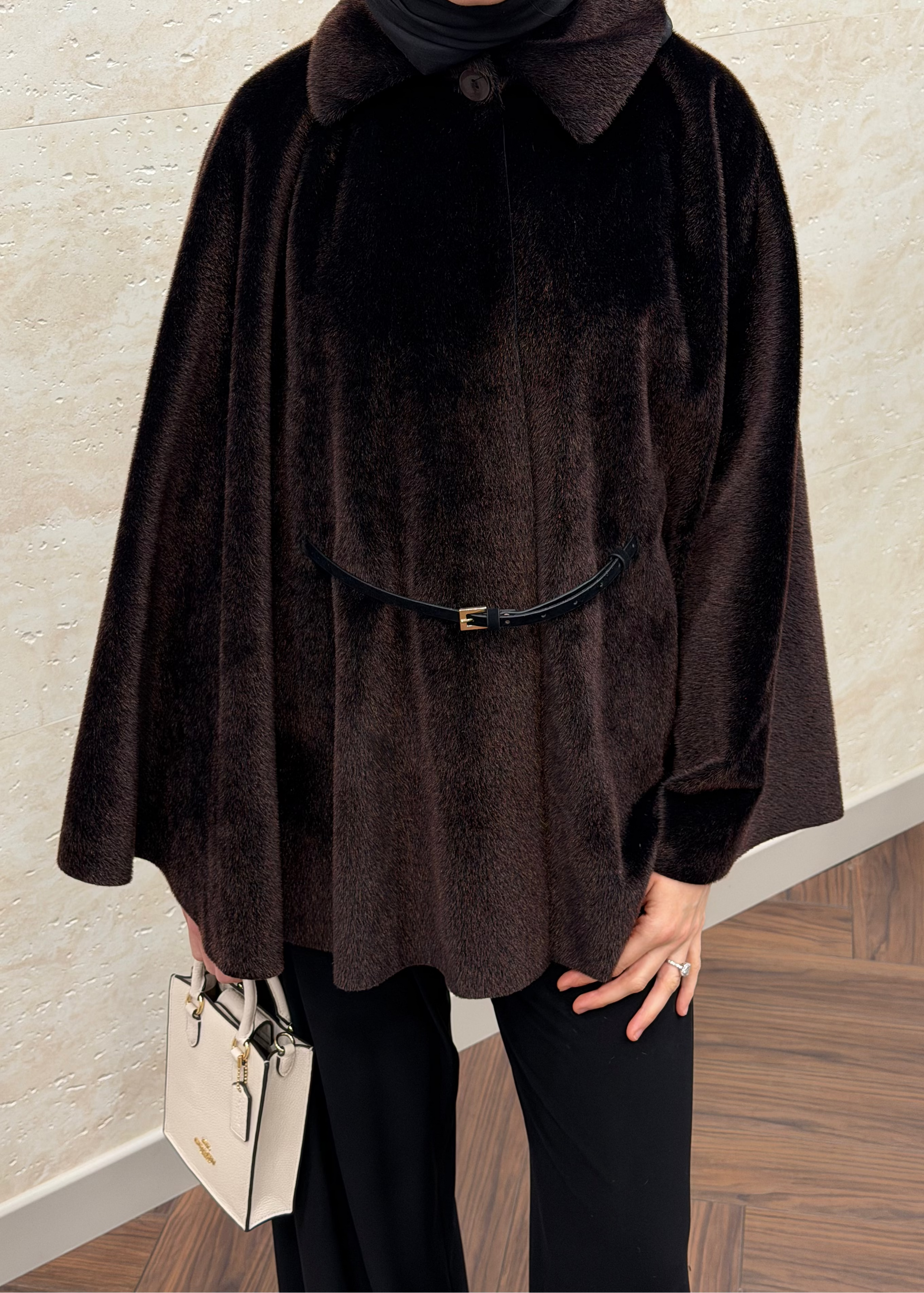 Yumuşak Fox Kaşe dokusu ve zarif dökümü ile soğuk havalarda stilinize eşlik edecek bu panço pelerin, modern kesimiyle fark yaratıyor. Pelerin formunun sağladığı rahatlık gün boyu konfor sunarken, minimalist tasarımı sayesinde her kombininizle kolayca uyum sağlar.