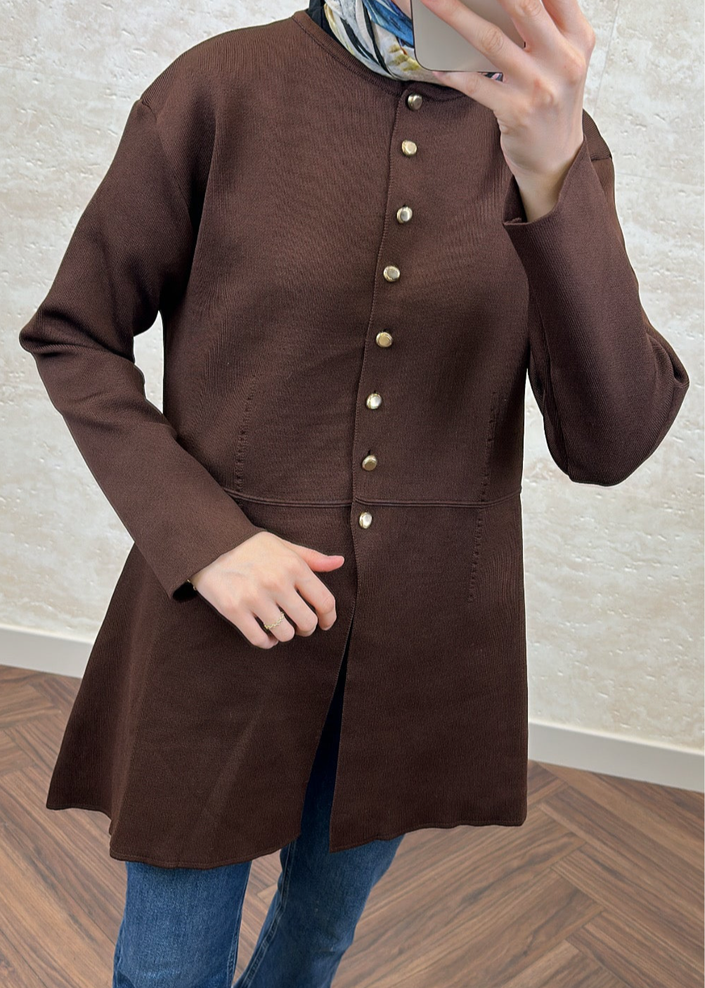 PREMIUM UZUN TRİKO HIRKA KAHVE