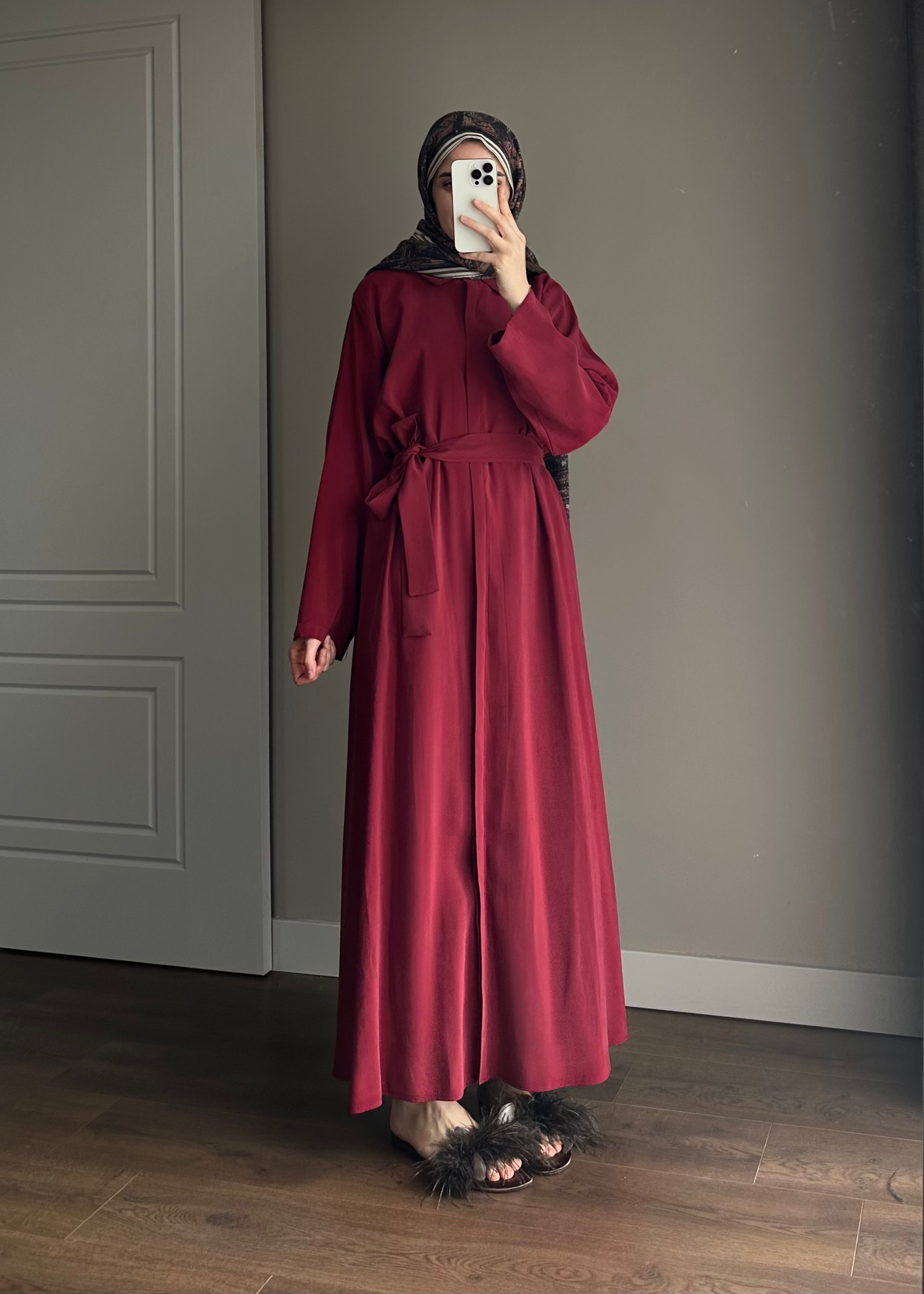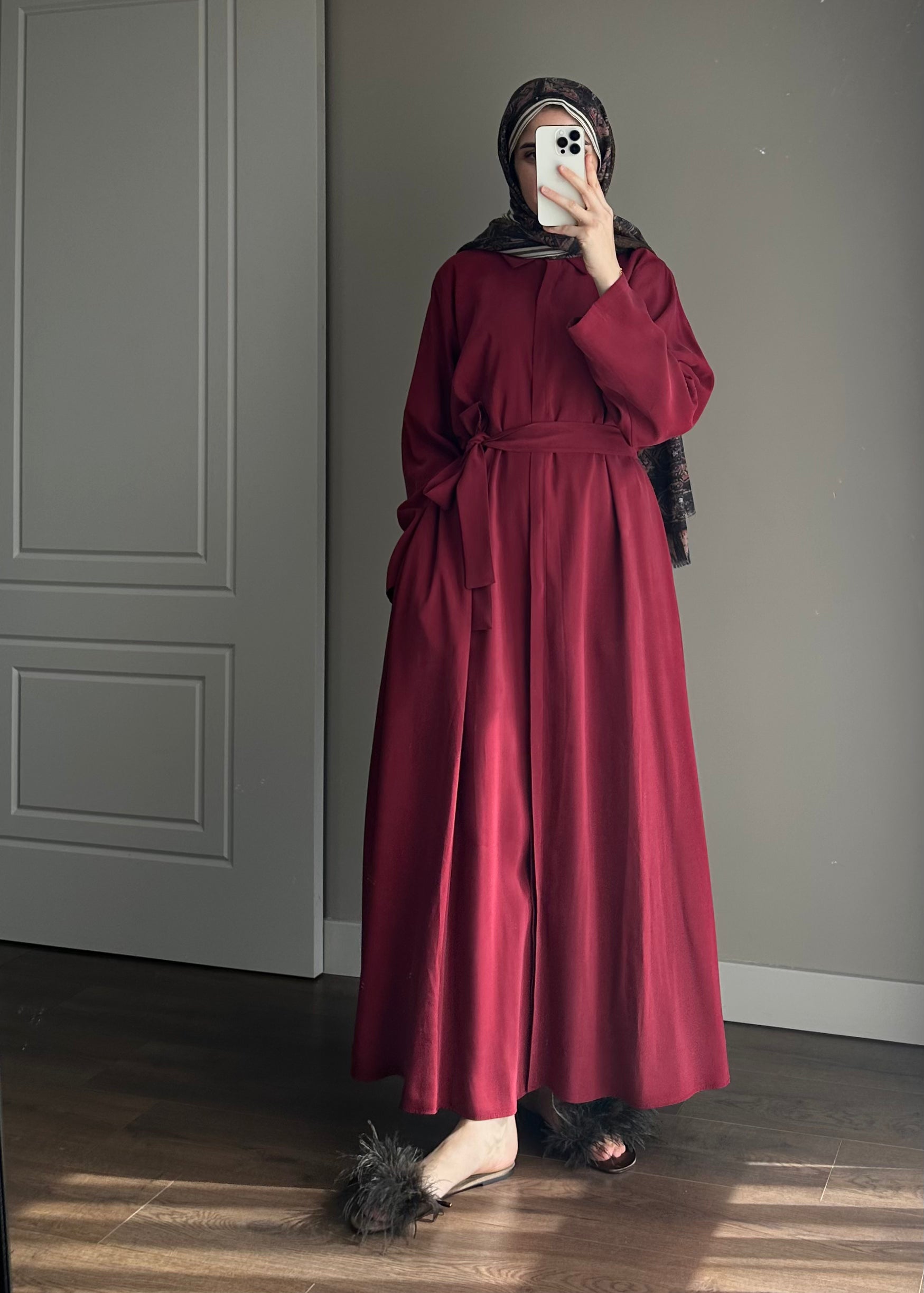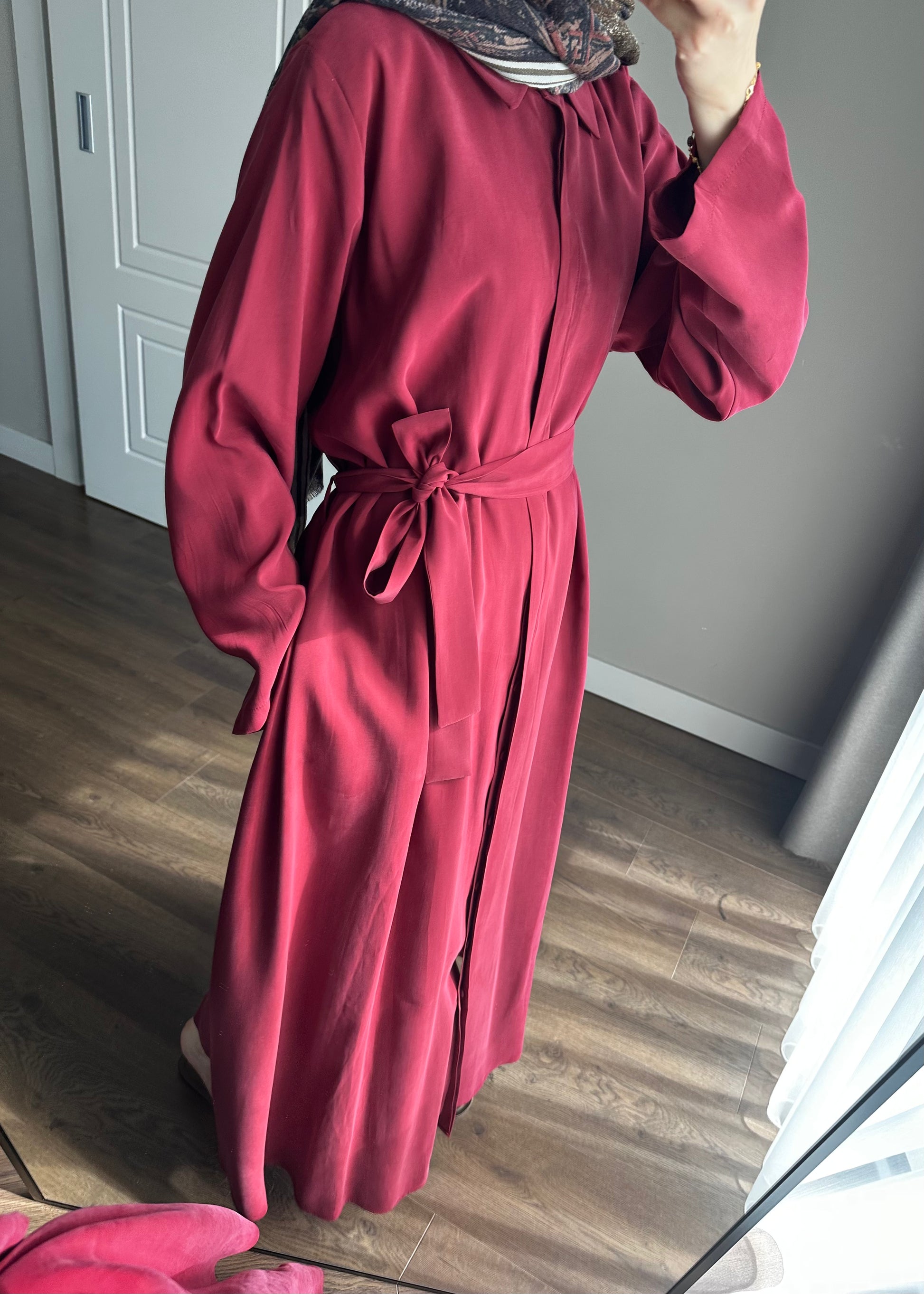 KUŞAKLI GÖMLEK ELBİSE BORDO