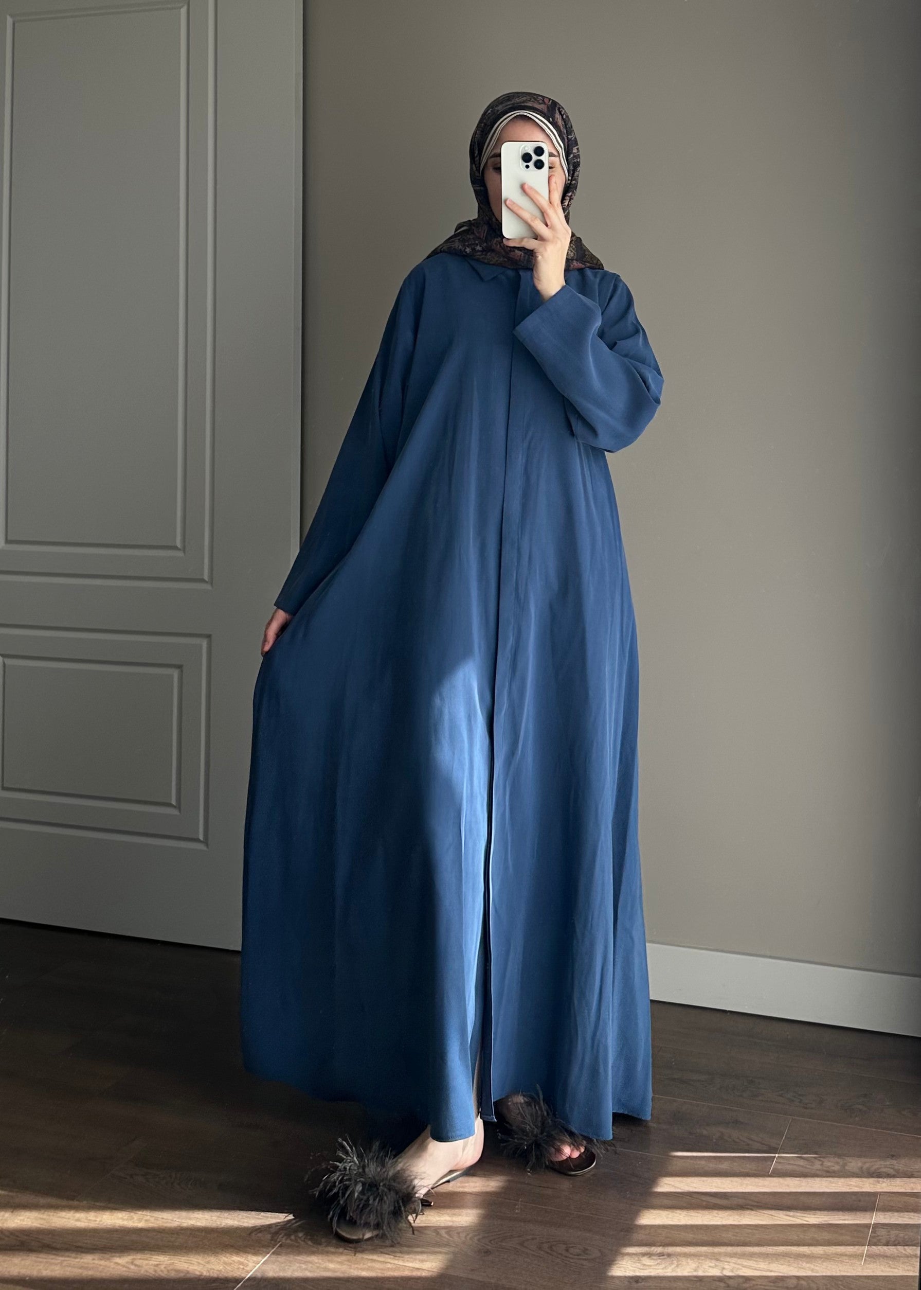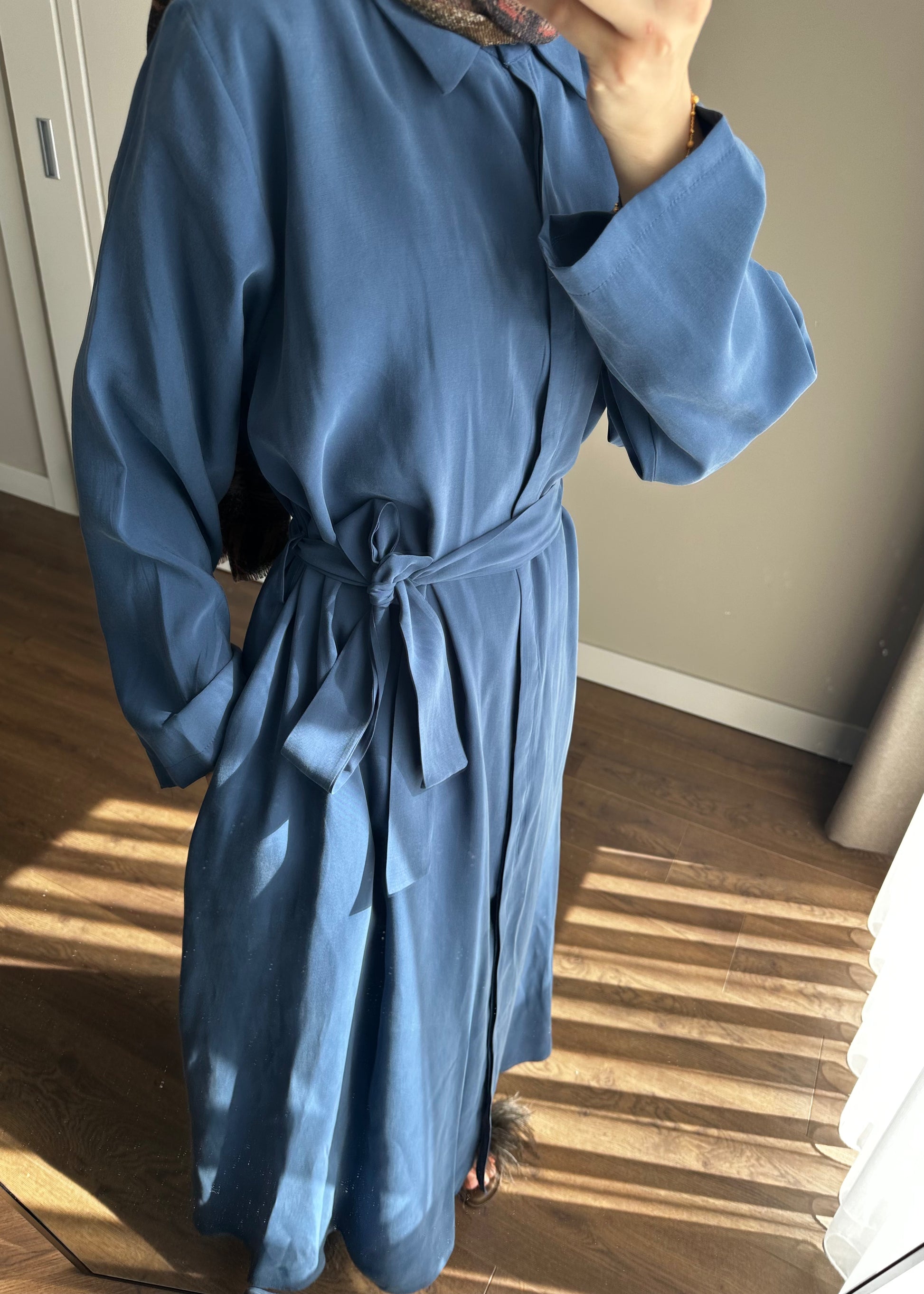 Gömlek yakalı , kuşaklı , oversize geniş kalıp , modal kumaş ipeksi elbise.