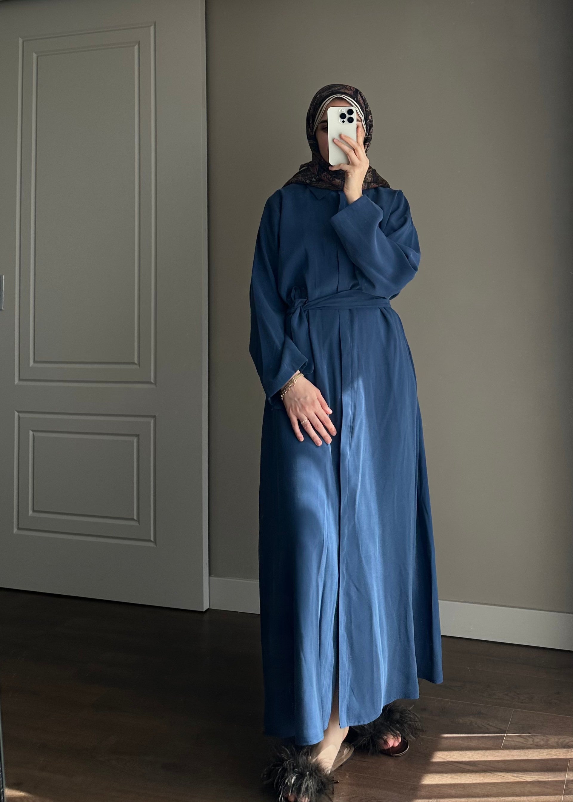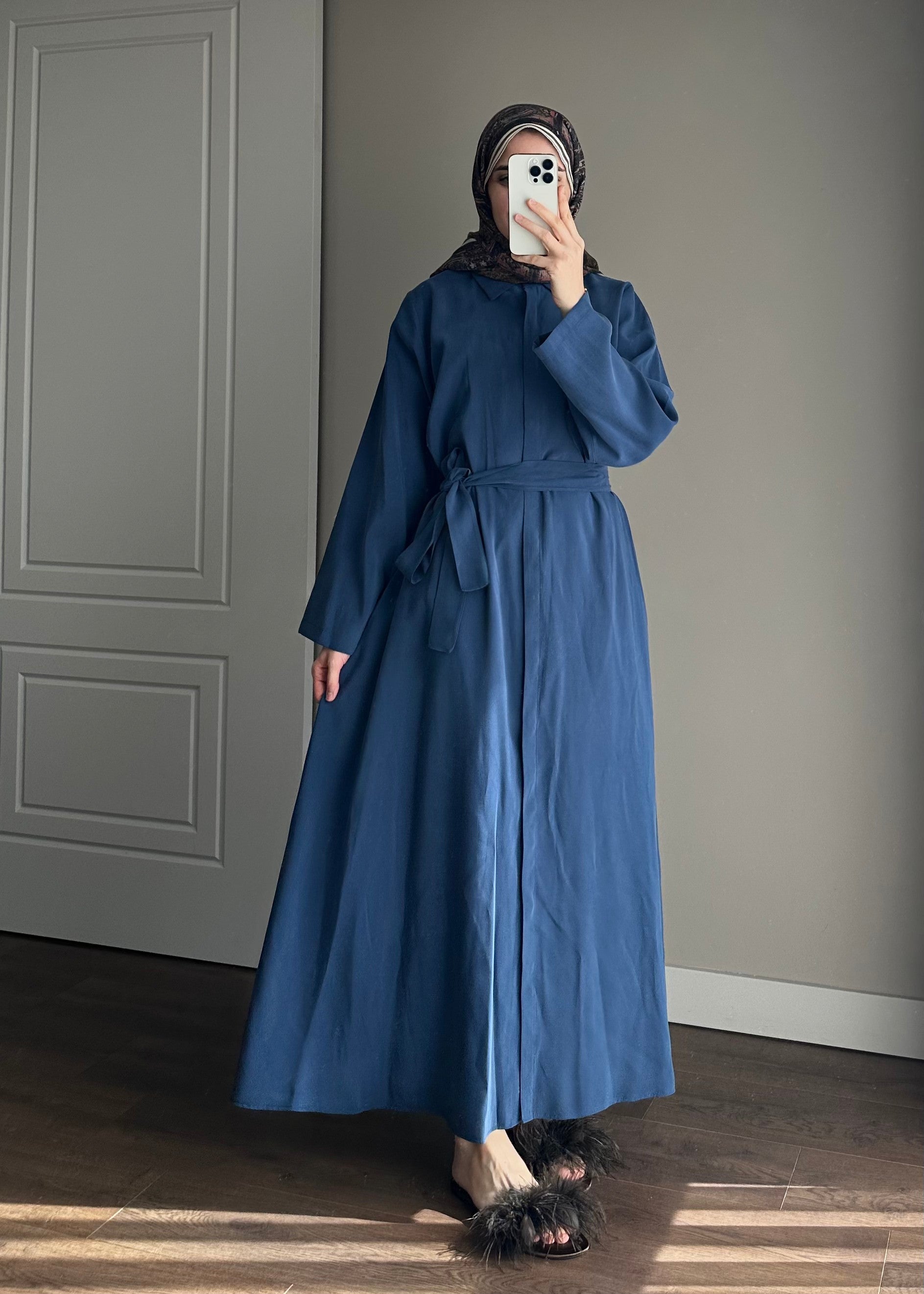 KUŞAKLI GÖMLEK ELBİSE LACİVERT