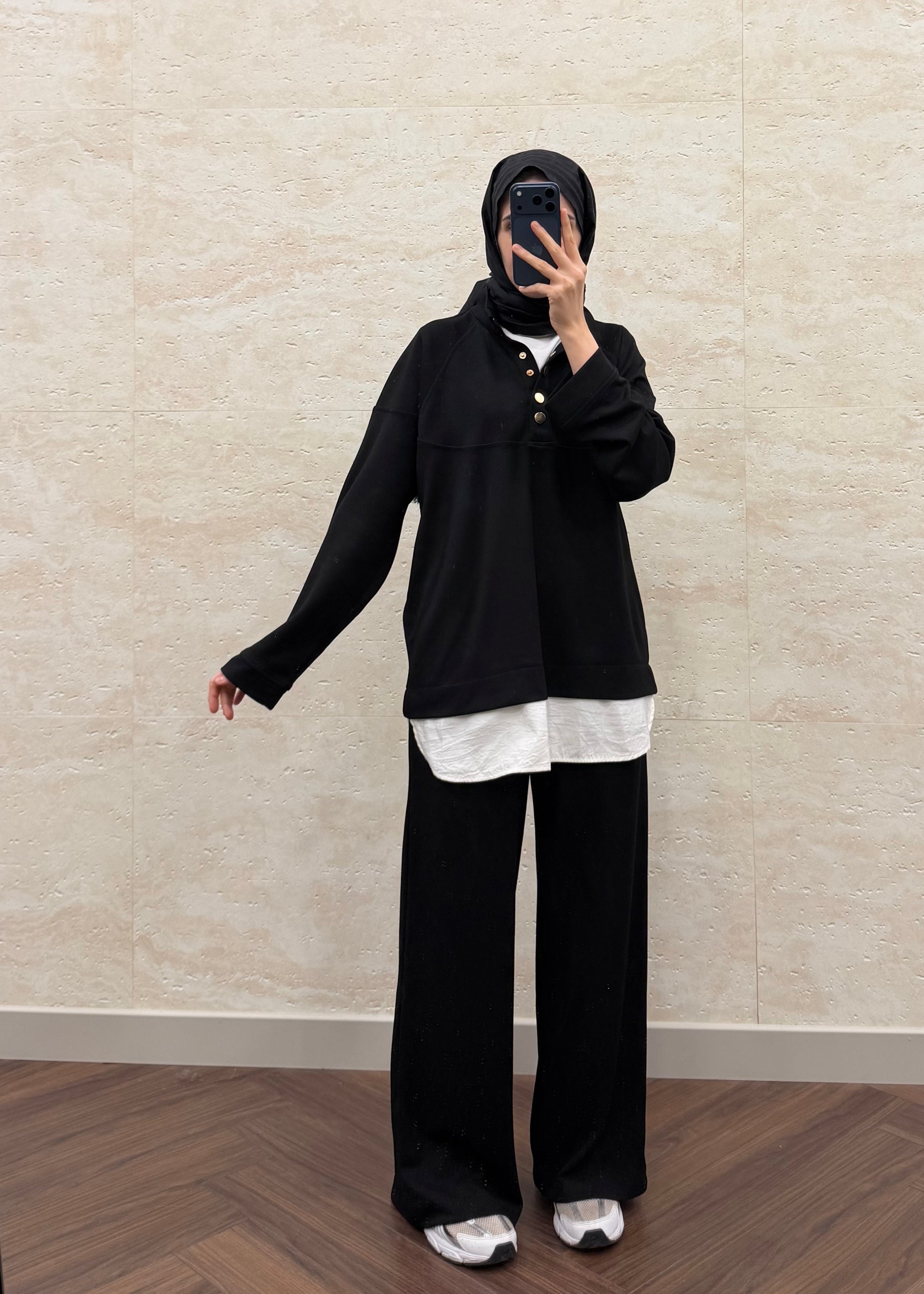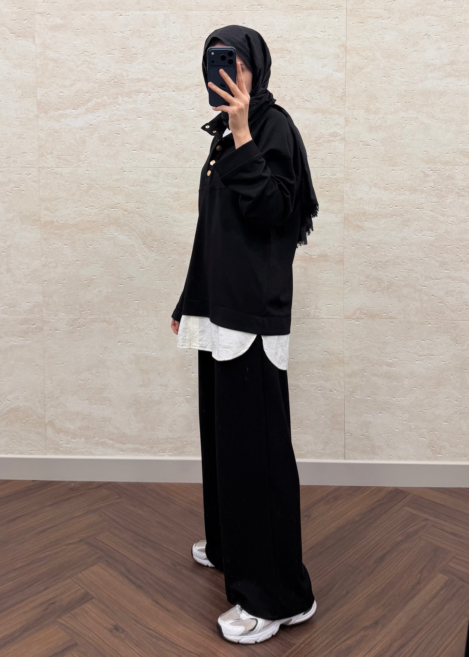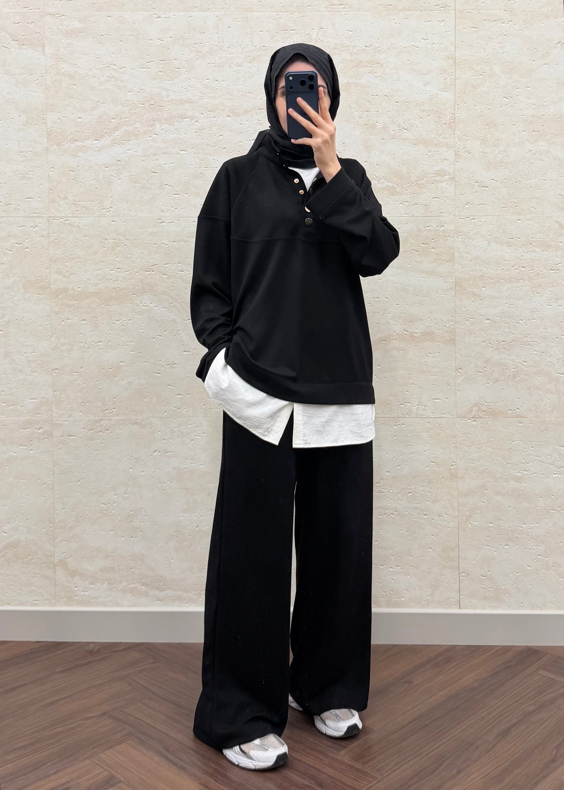 Günlük şıklığı konforla buluşturan bu modal takım, dökümlü yapısı ve yumuşak dokusuyla gün boyu rahatlık sunar. Oversize kesimli üst, göz alıcı düğme detayları ve katmanlı görünümüyle modern bir stil oluşturur.