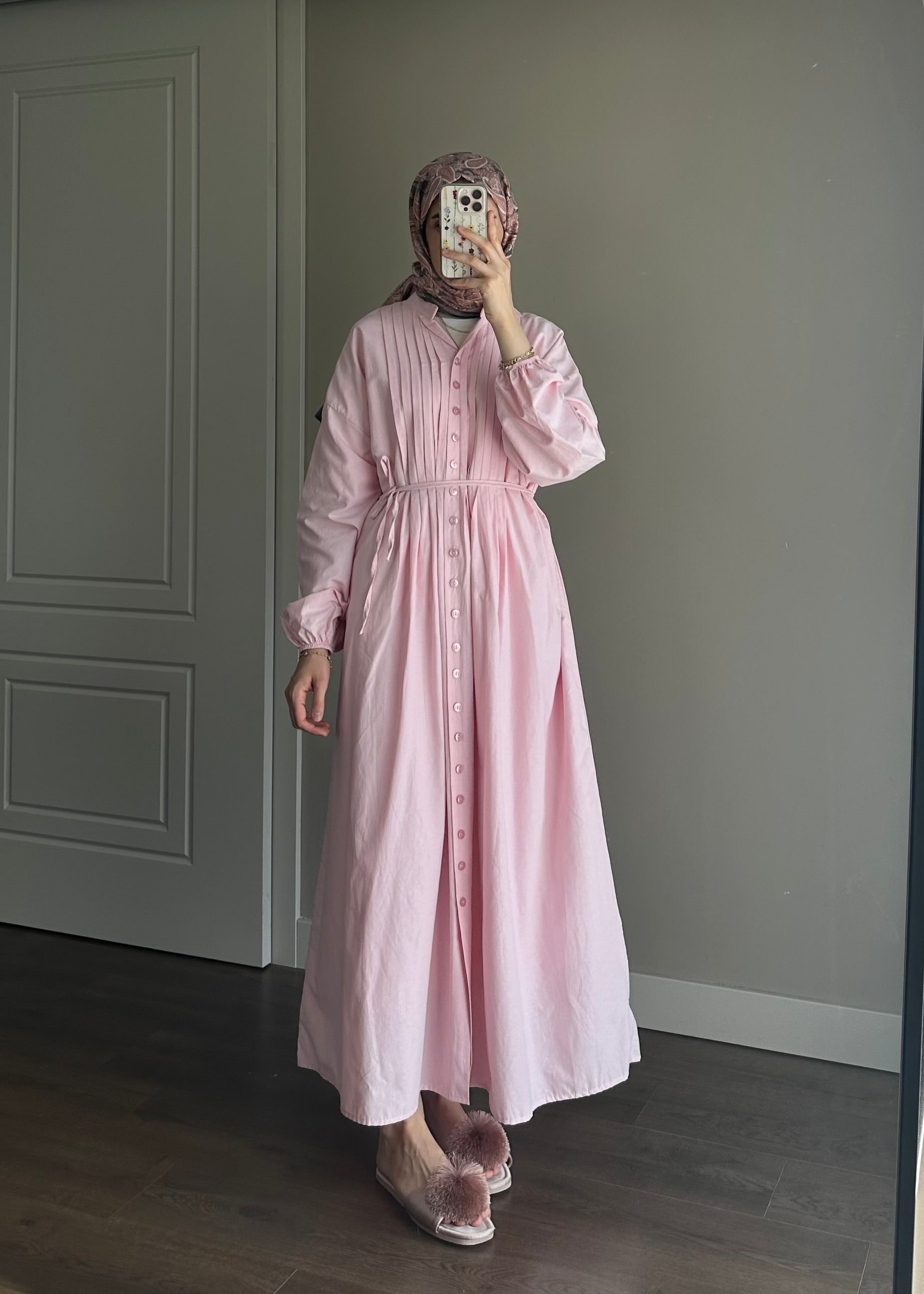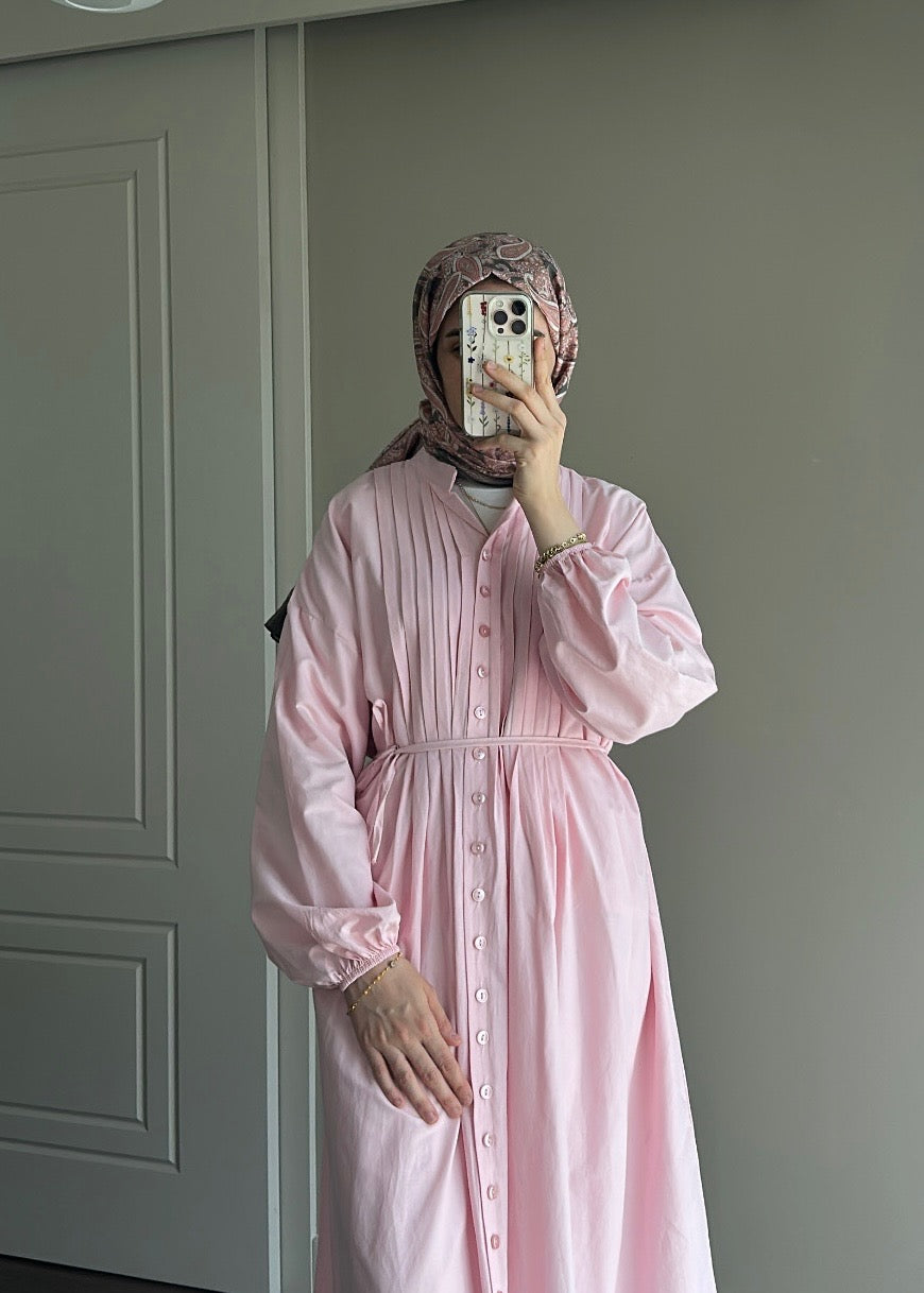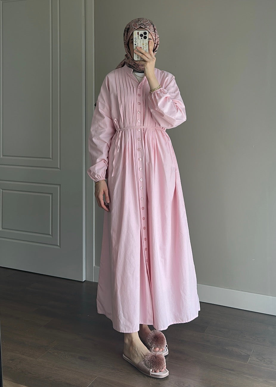 NERVÜRLÜ POPLİN ELBİSE PEMBE