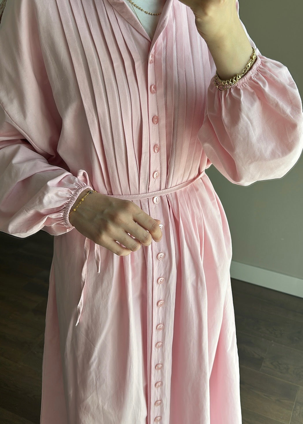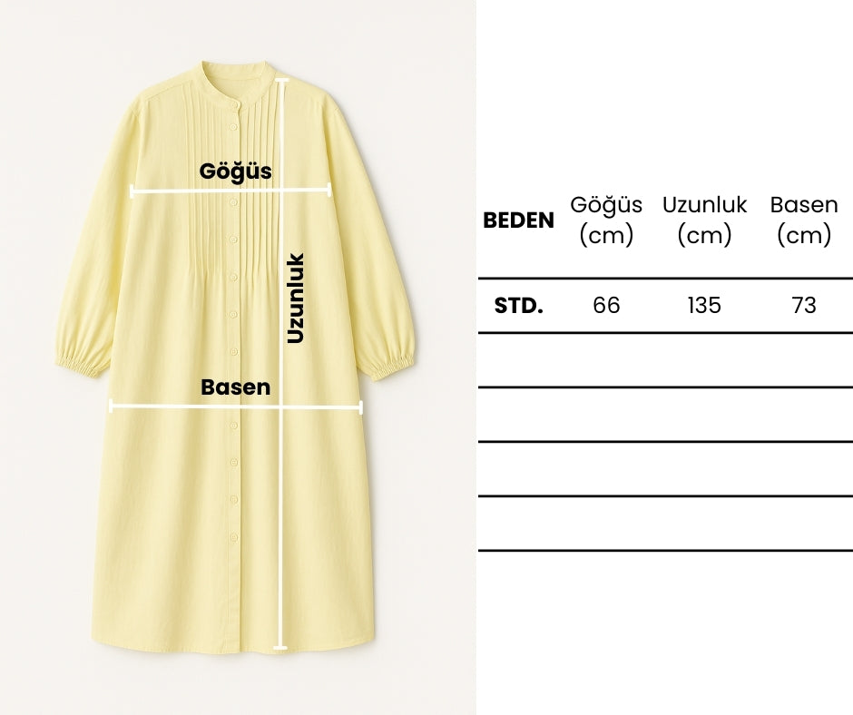 Hakim yakalı , seyyar kuşaklı , nervür detaylı , boydan düğmeli , kolları lastikli , oversize kalıp , poplin kumaş elbise.