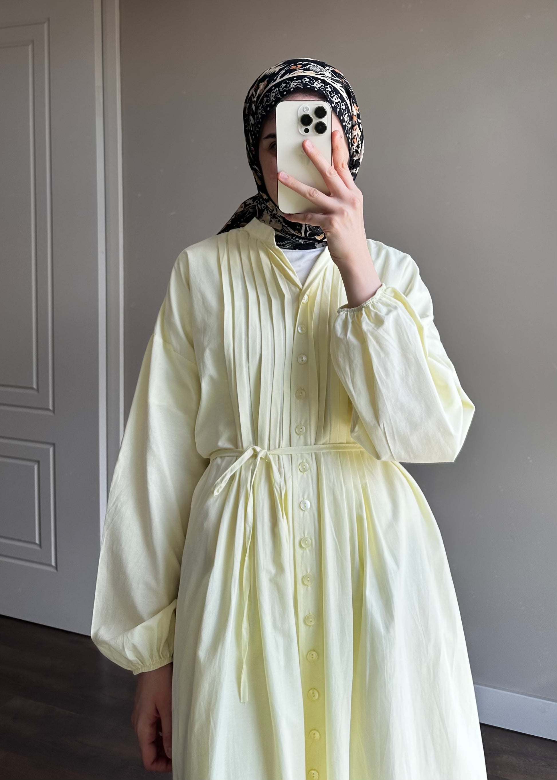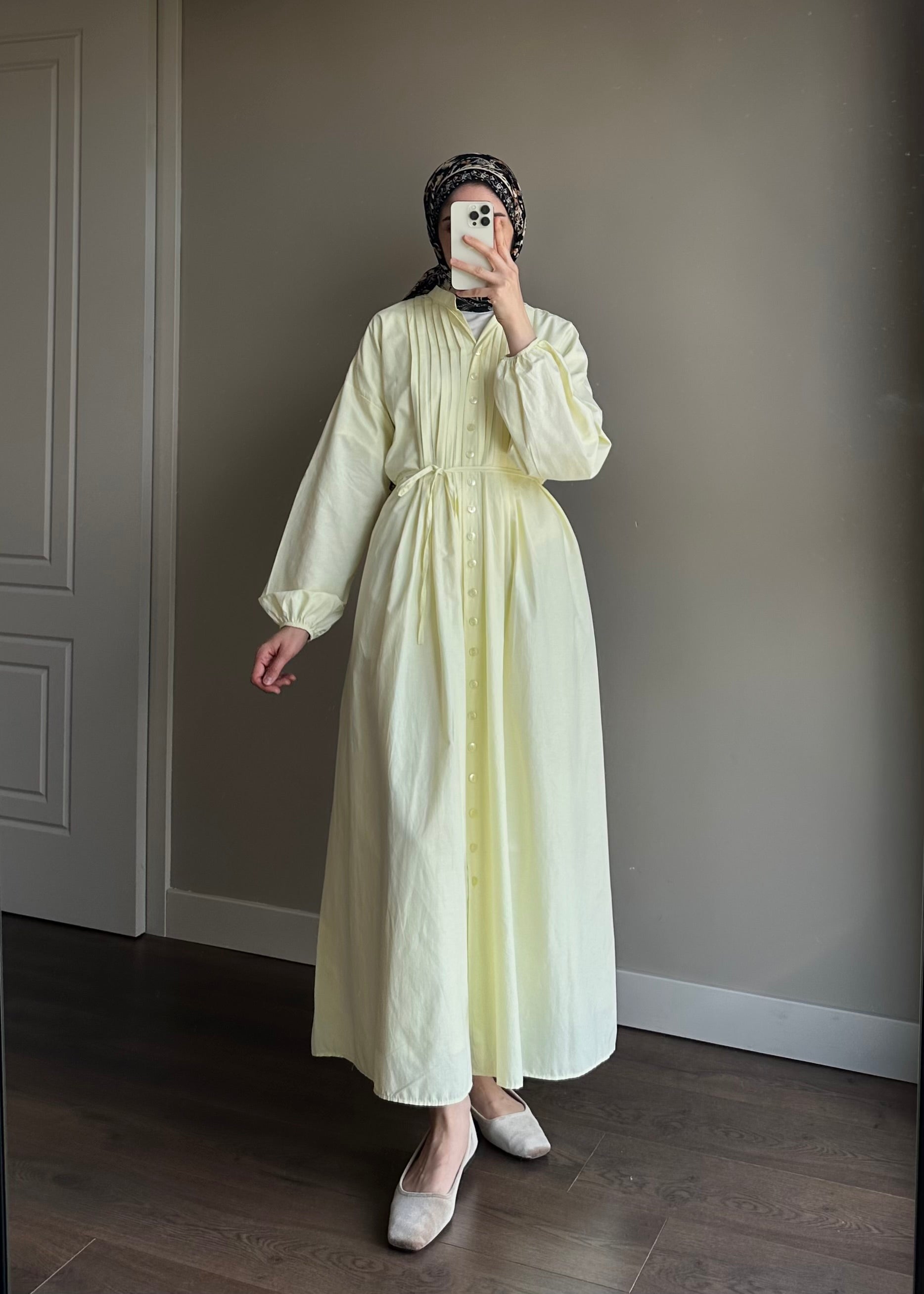 NERVÜRLÜ POPLİN ELBİSE SARI