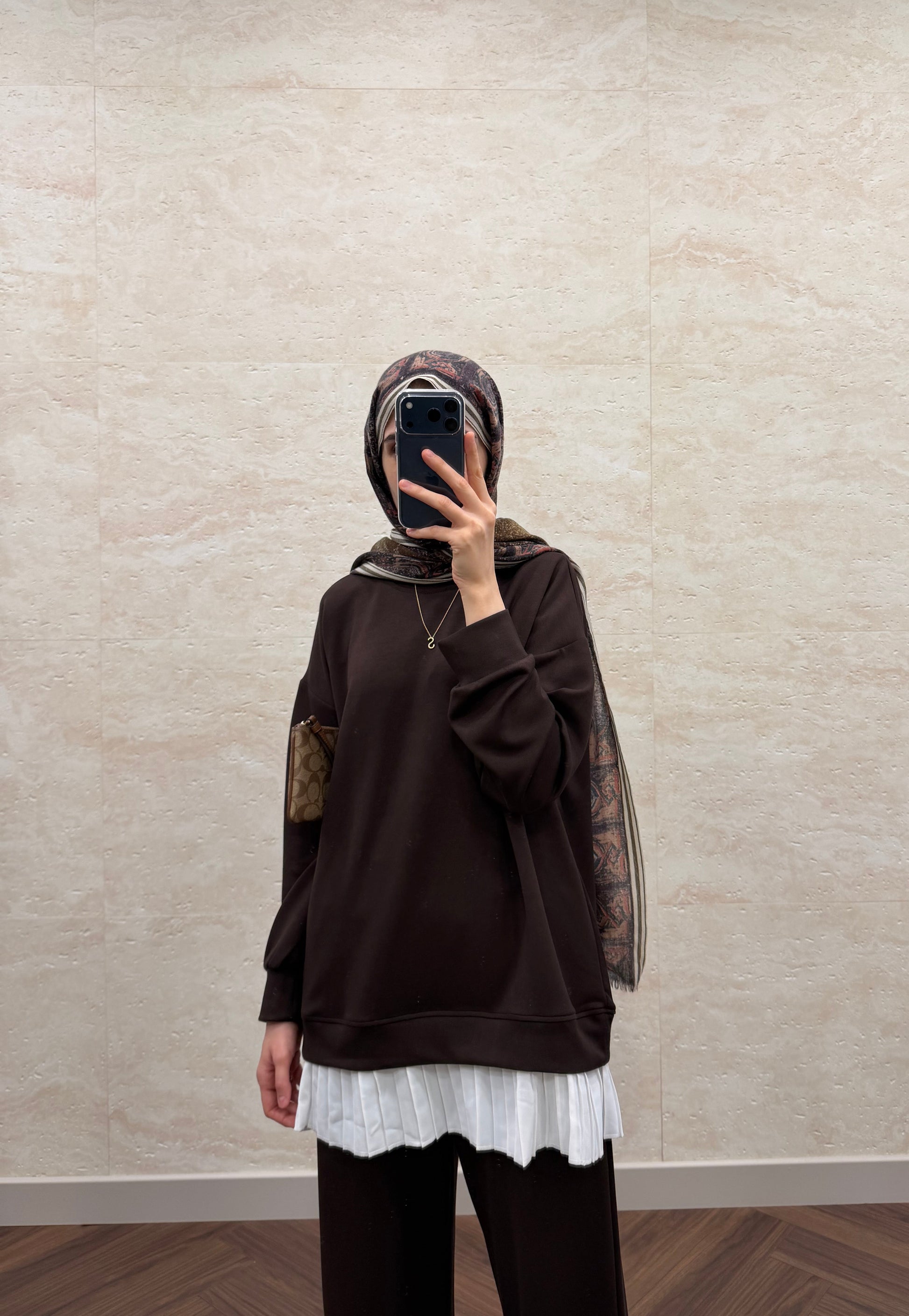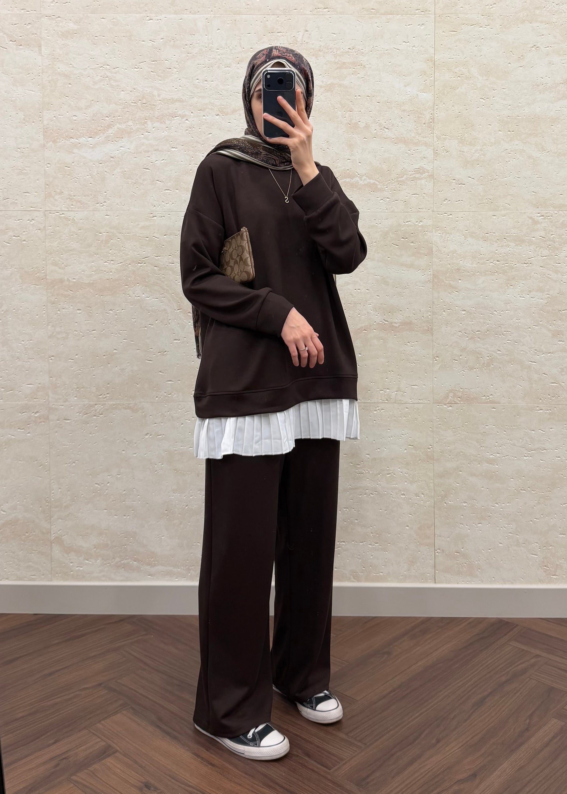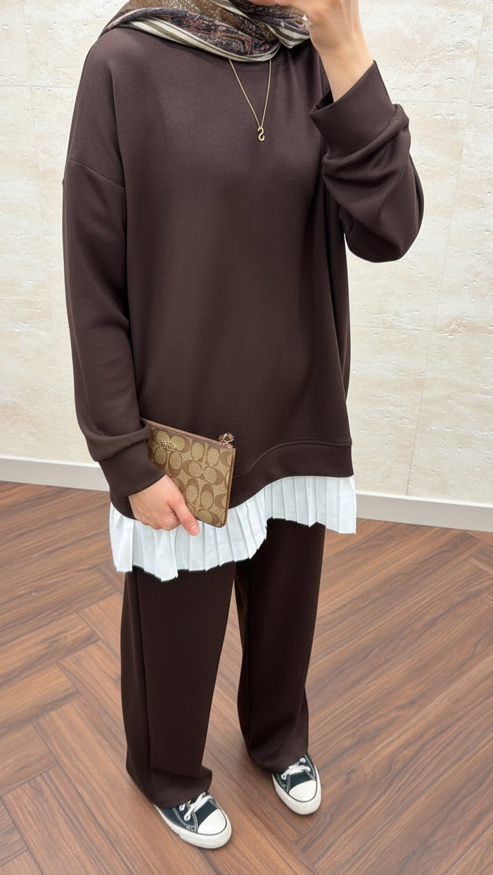 OYSH PLİSE GARNİLİ TAKIM KAHVE