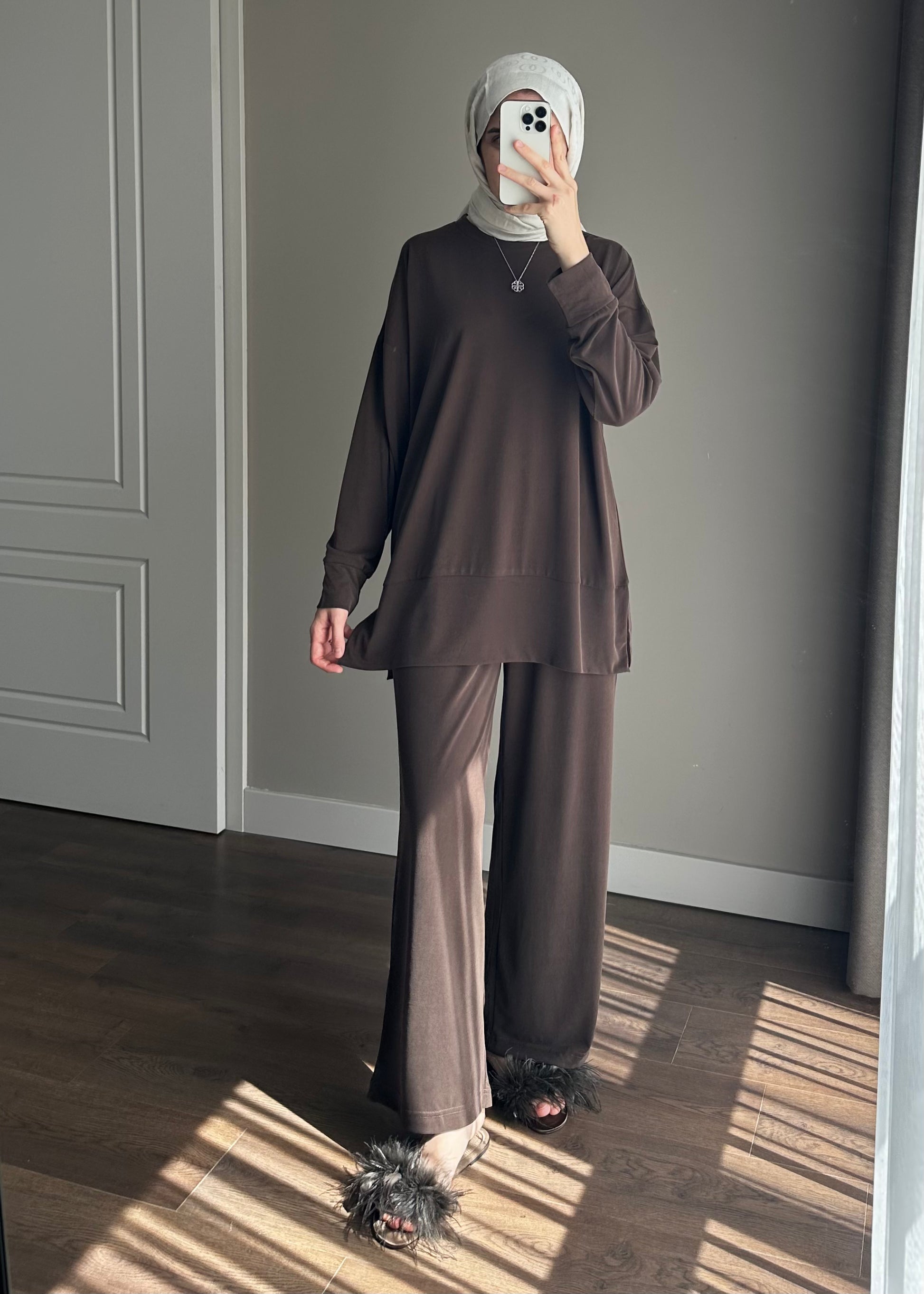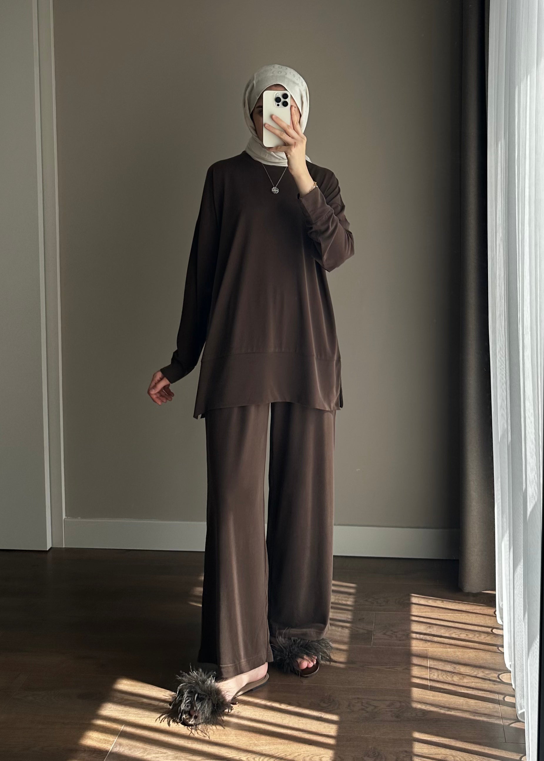 - Oysh kumaş pantolonlu takım ile gün boyu rahatlık. Hafif ve dökümlü kumaşı sayesinde hem konforlu hem de zarif bir duruş sunar.