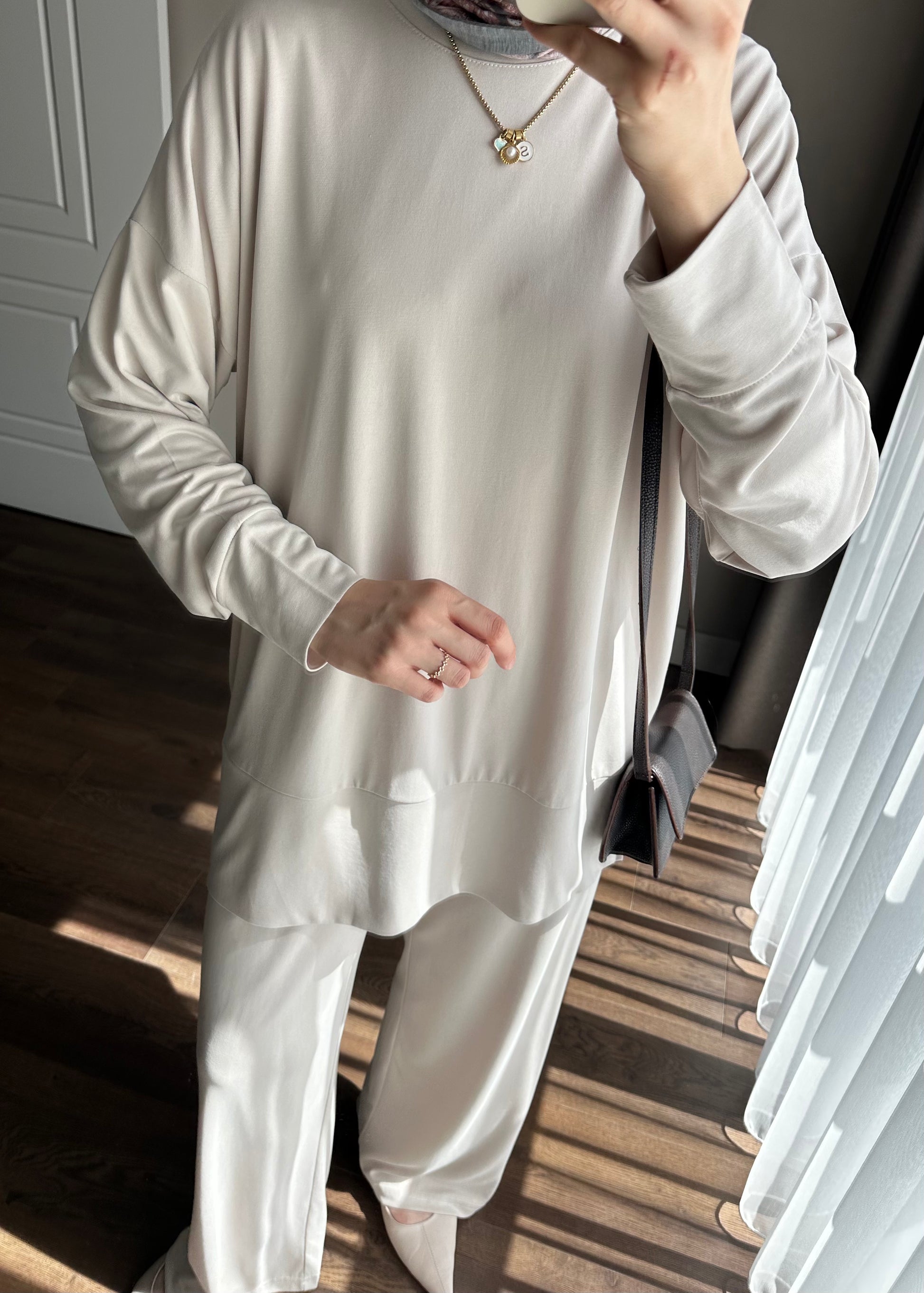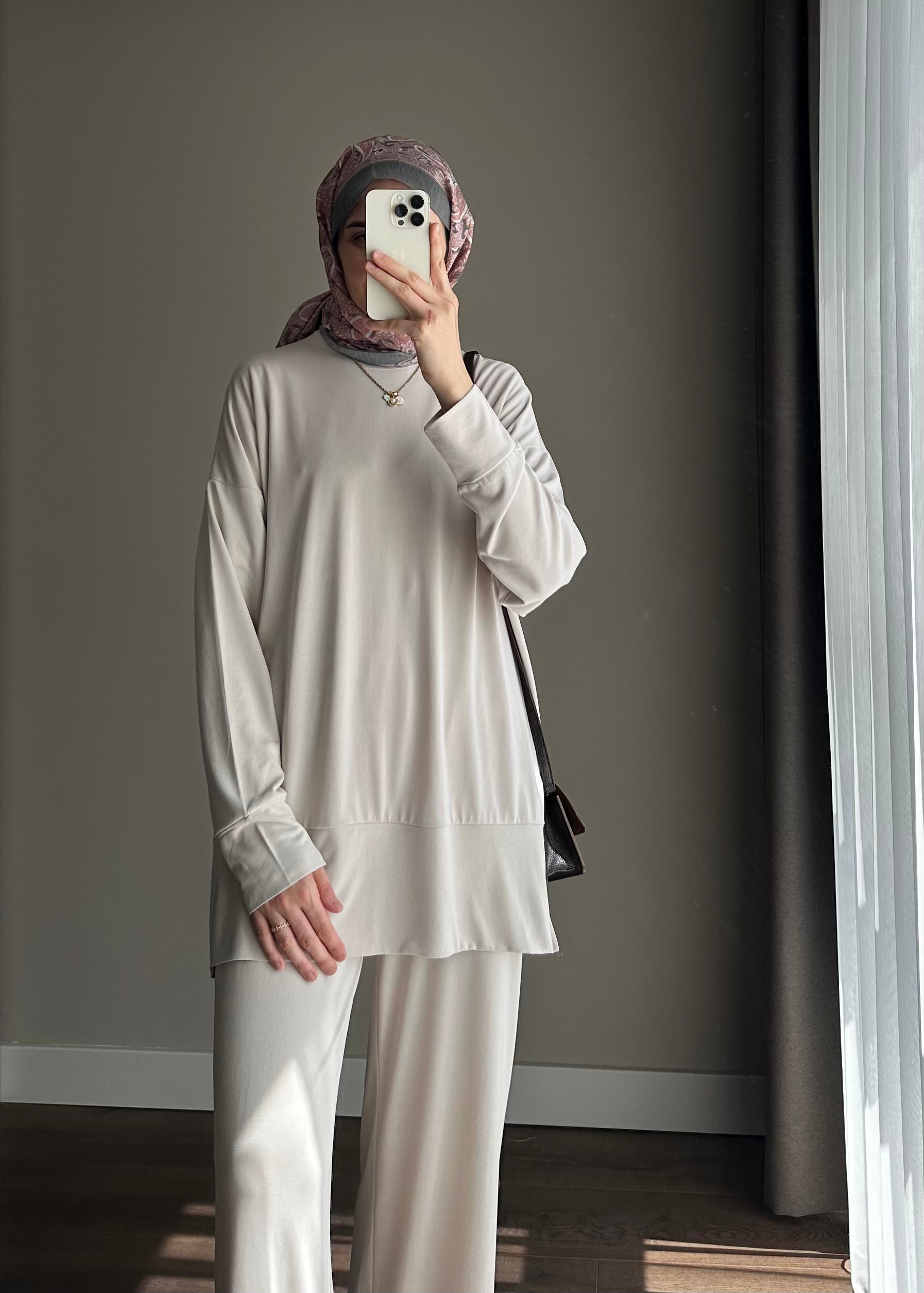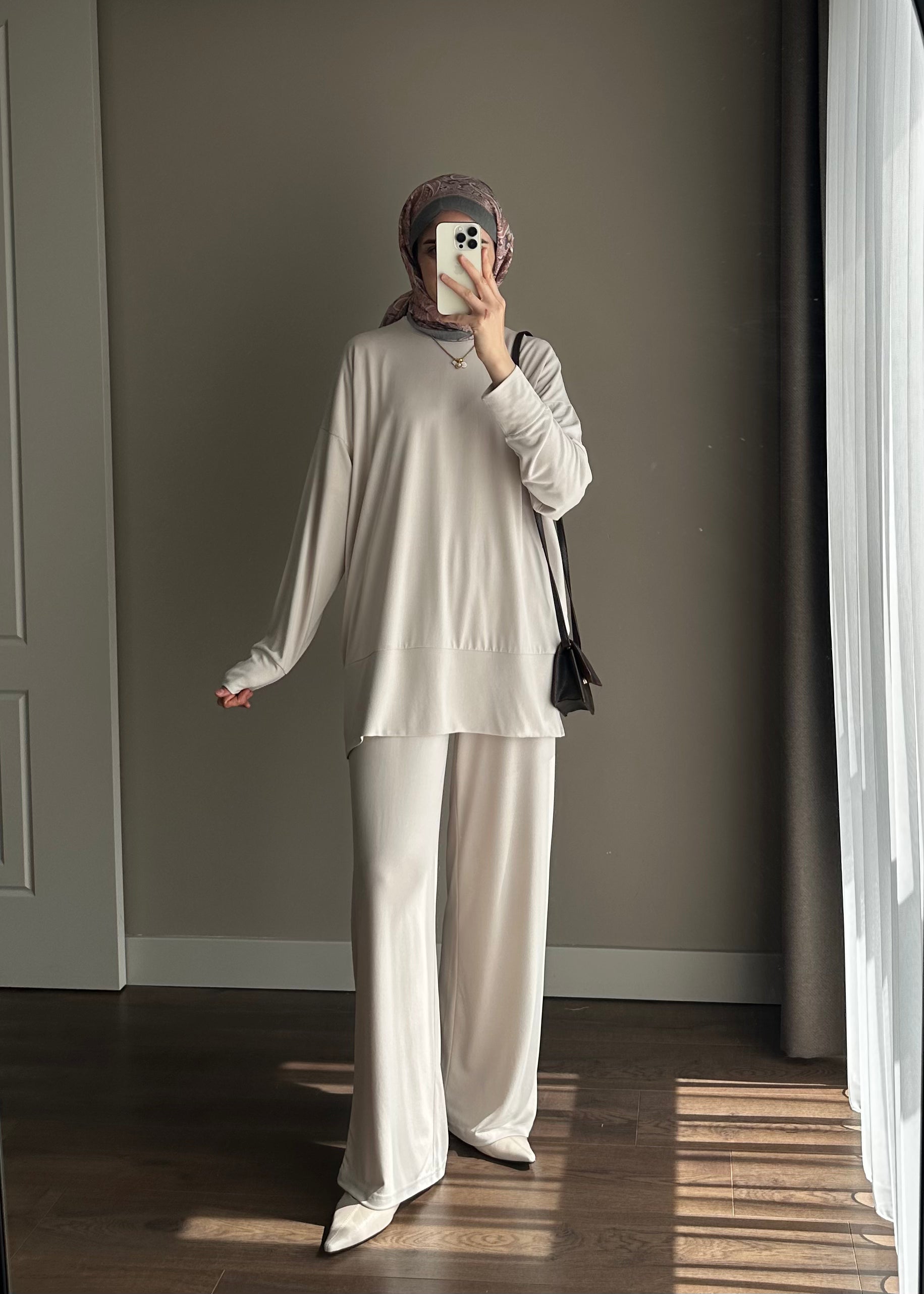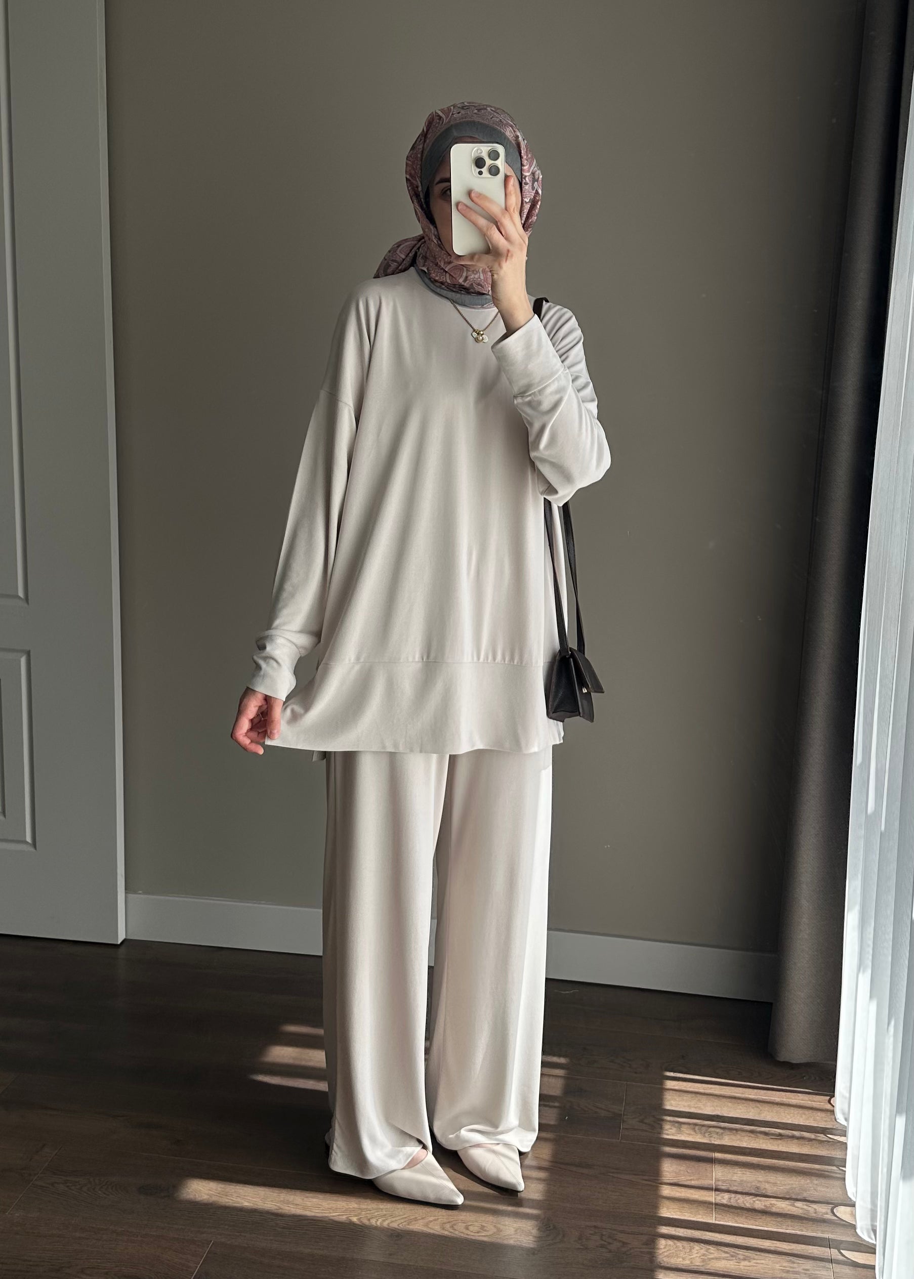 - Oysh kumaş pantolonlu takım ile gün boyu rahatlık. Hafif ve dökümlü kumaşı sayesinde hem konforlu hem de zarif bir duruş sunar.