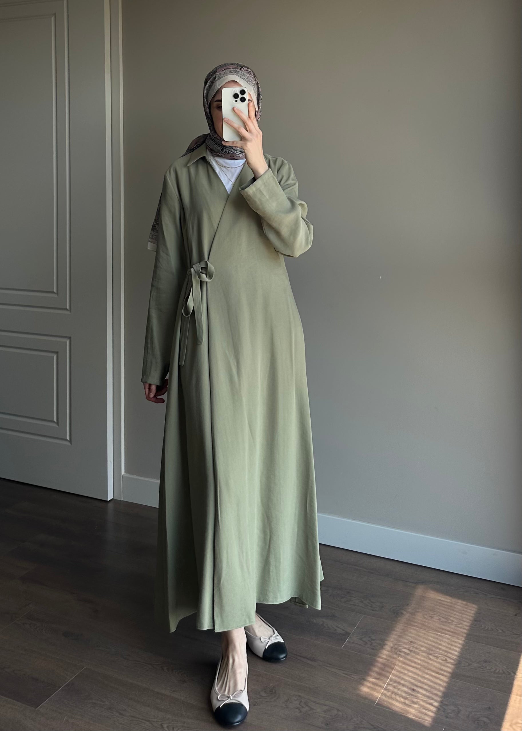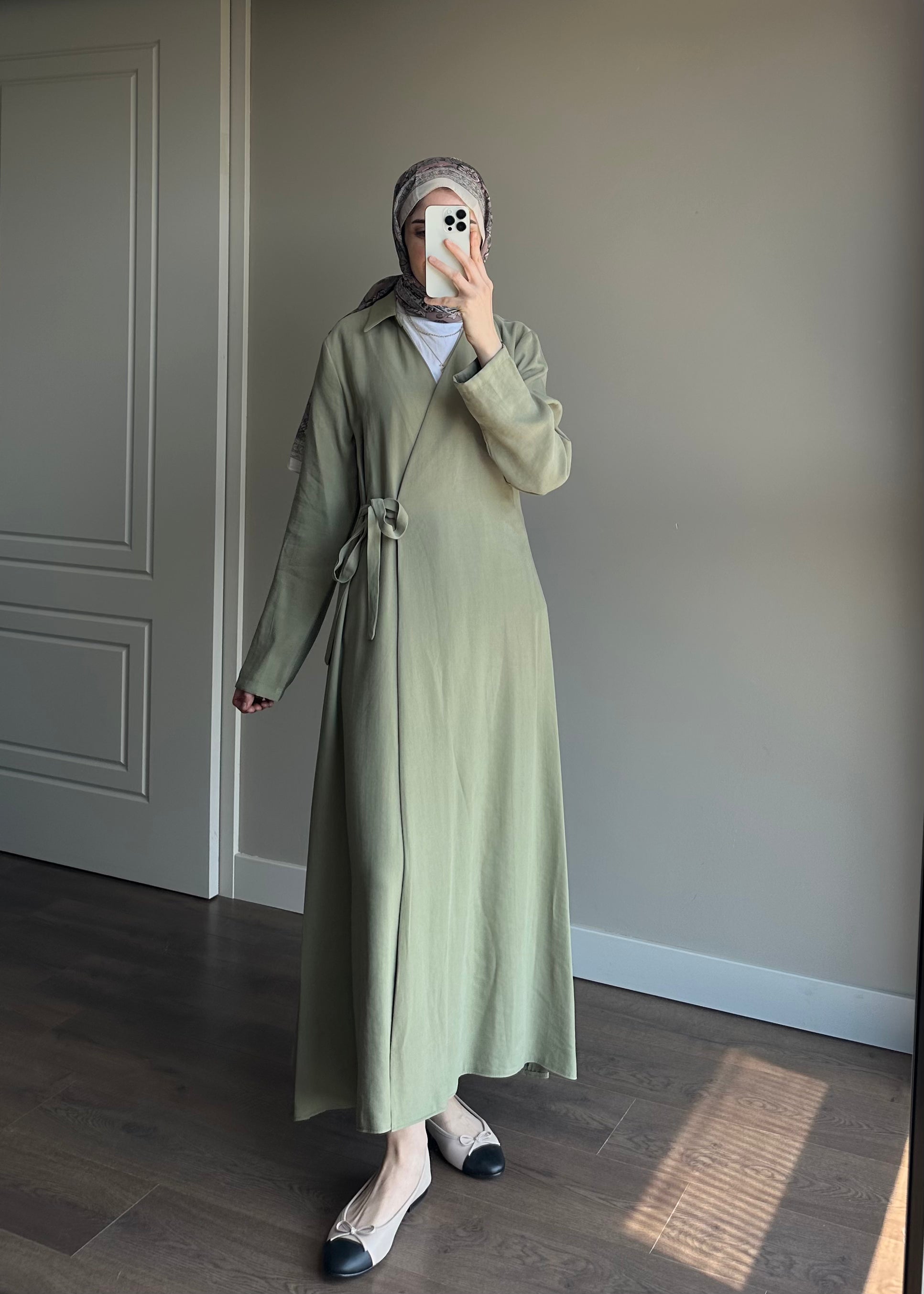 Premium tensel kumaş , yandan bağlamalı , gömlek yakalı elbise.
