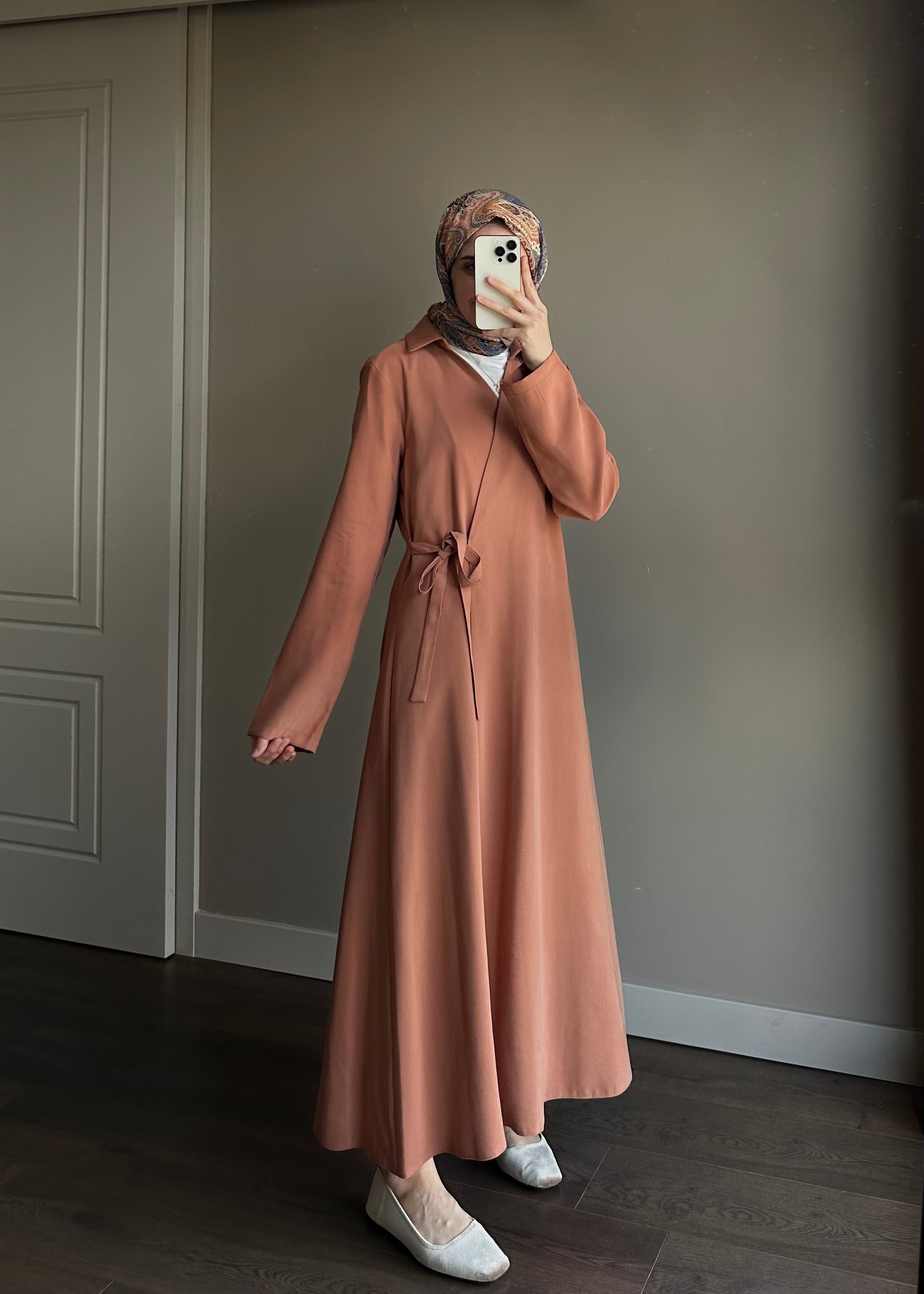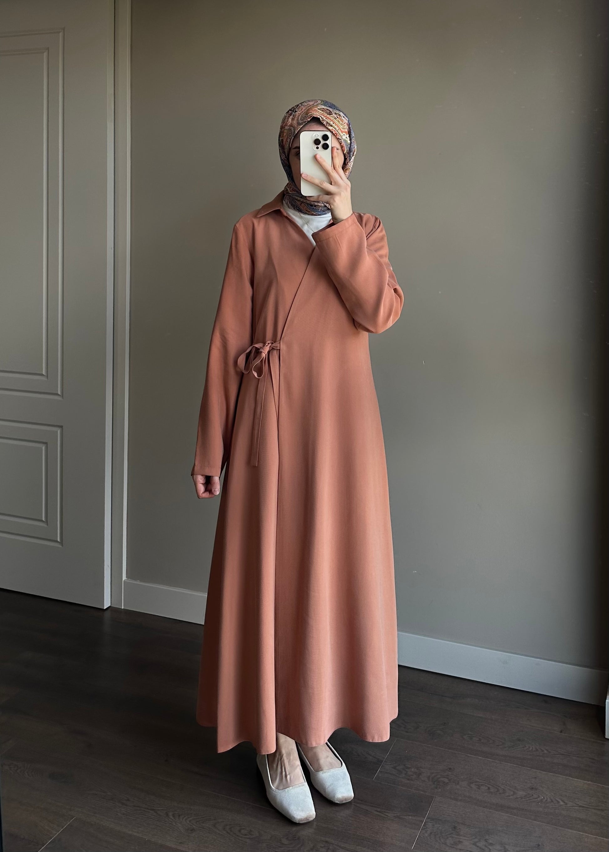 Premium tensel kumaş , yandan bağlamalı , gömlek yakalı elbise.