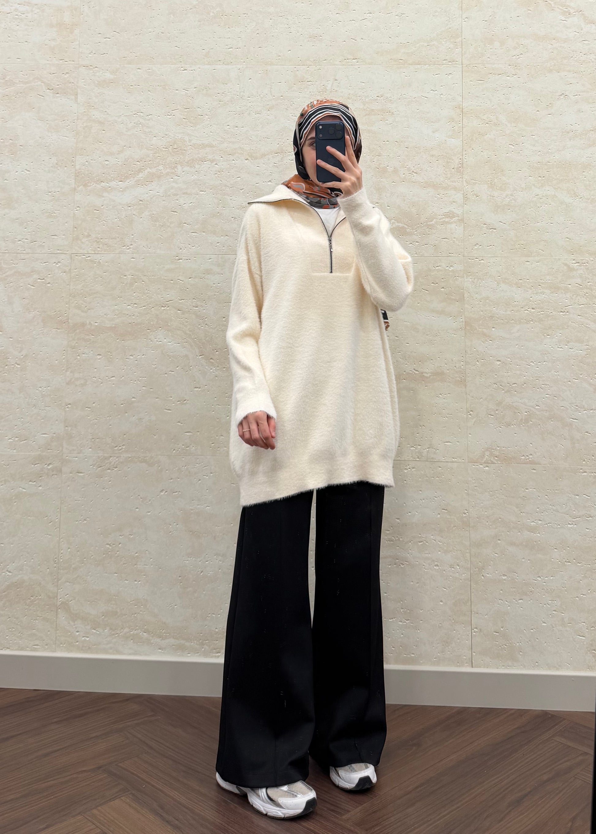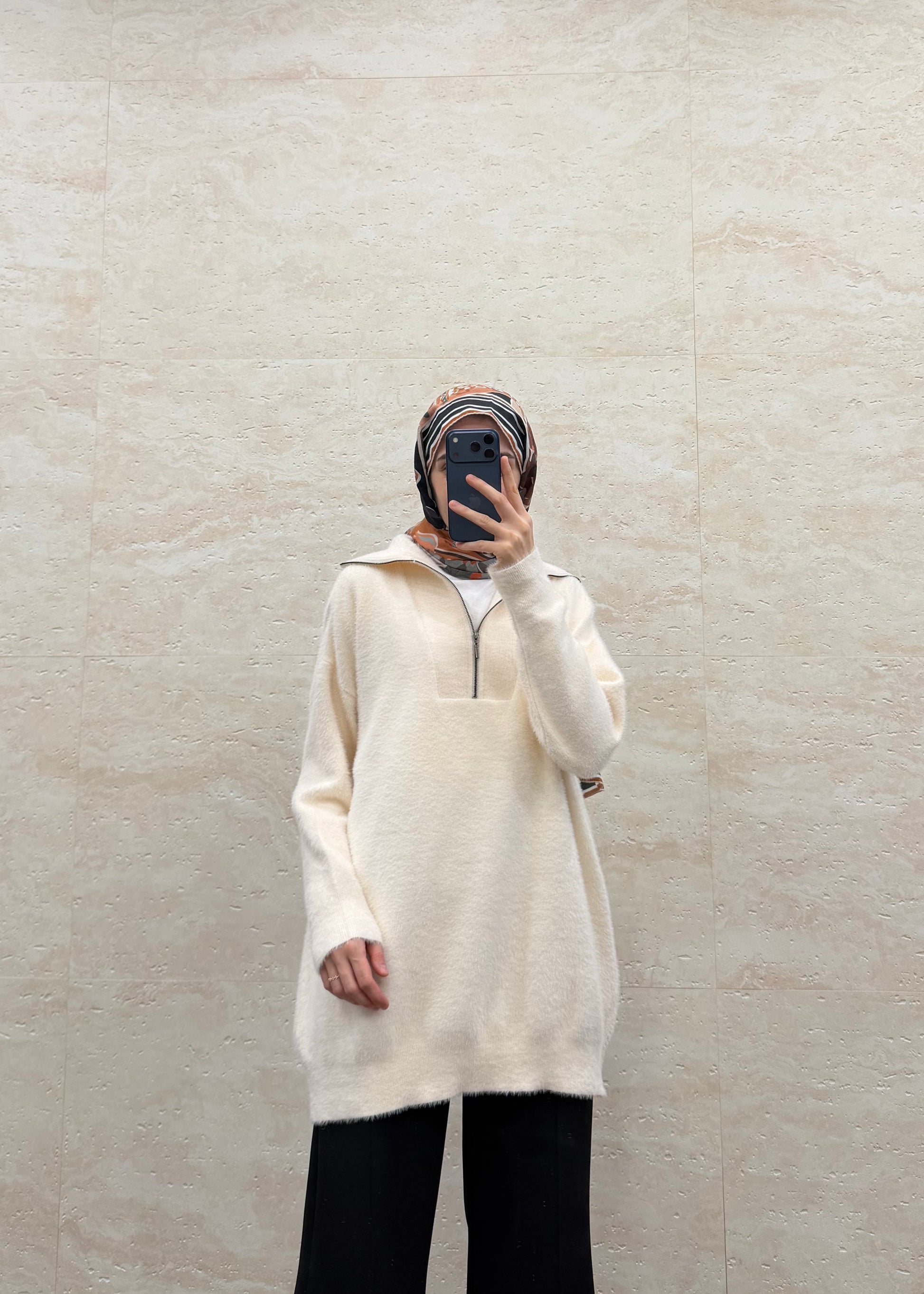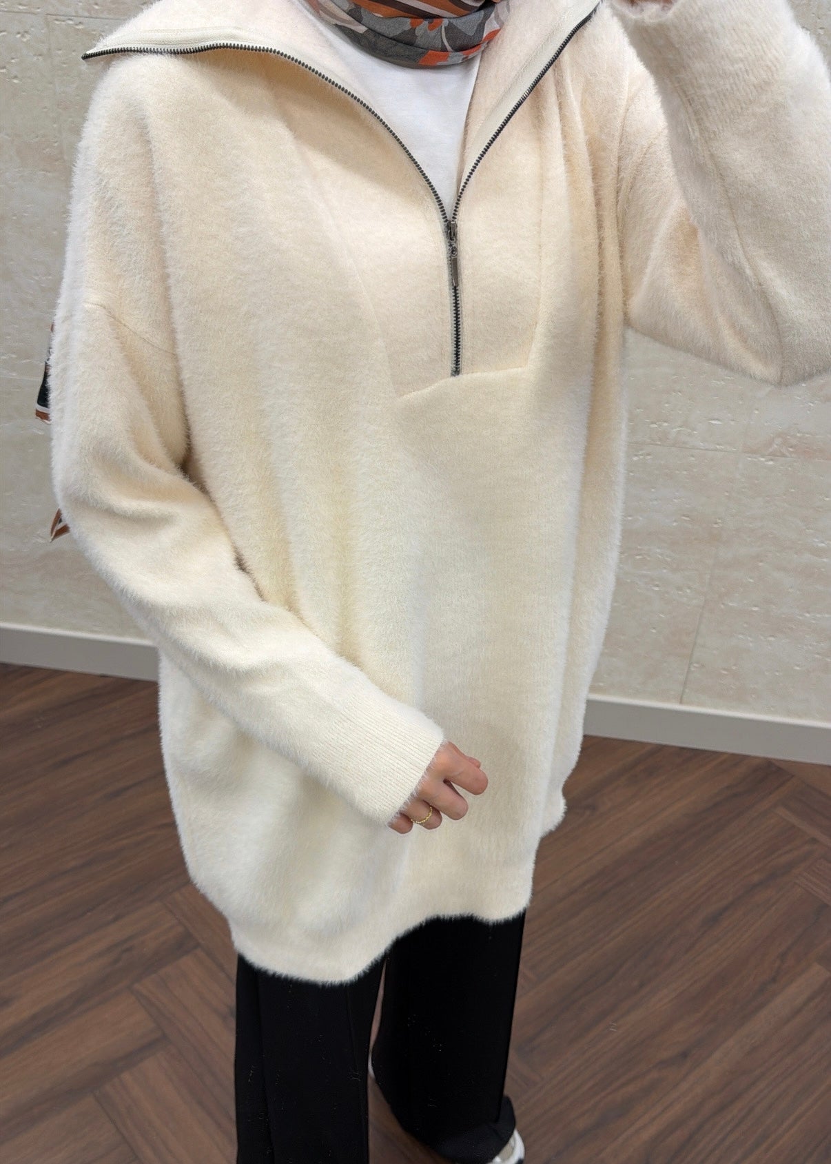 Yumuşacık dokusu ve modern fermuar detaylı yakasıyla kış stilini konforla buluşturan triko kazak. Soğuk günlerde sıcacık tutan kumaşı sayesinde hem günlük hem de şık kombinlere kolayca uyum sağlar. Dolabın vazgeçilmez bir parçası olmaya aday!