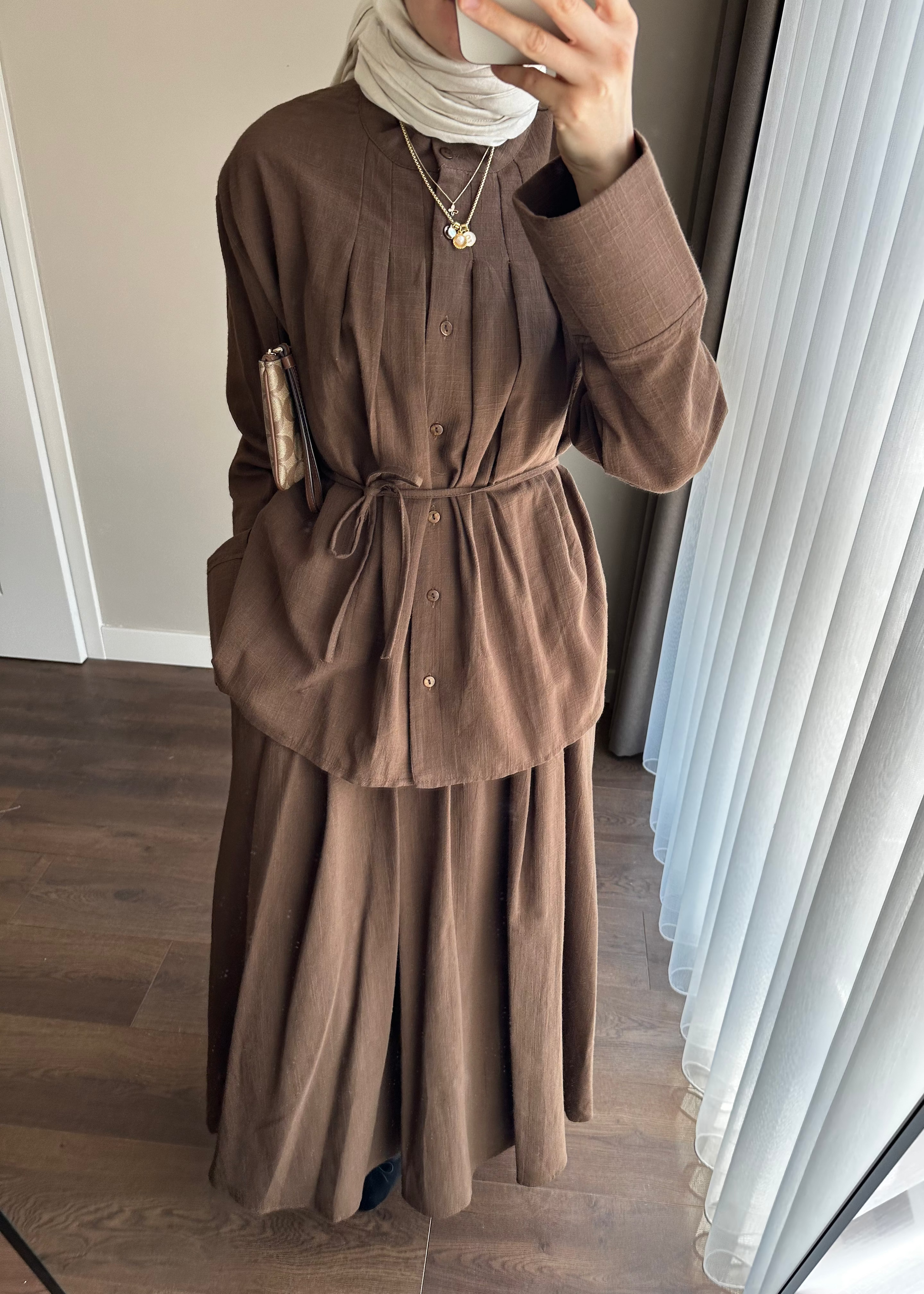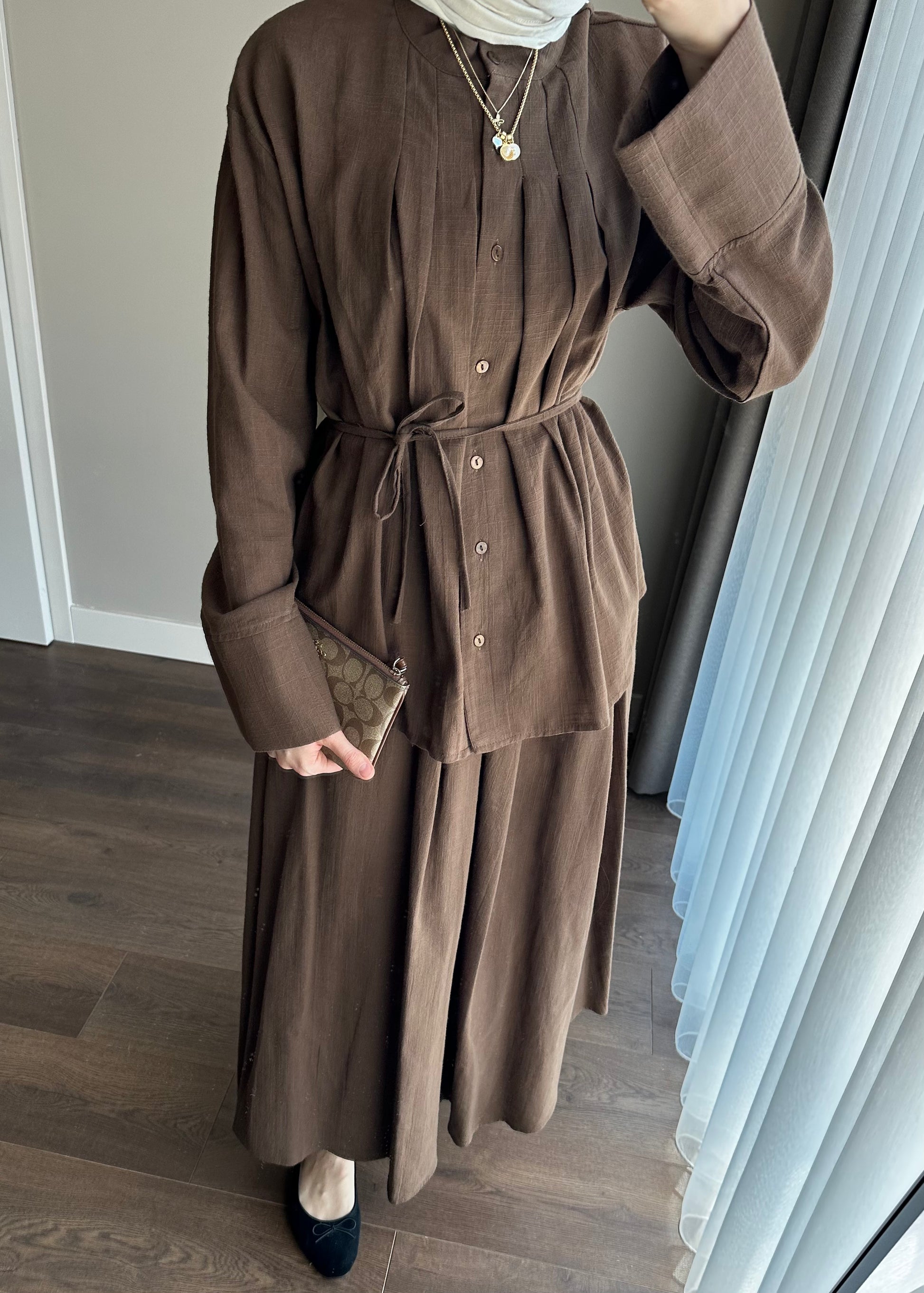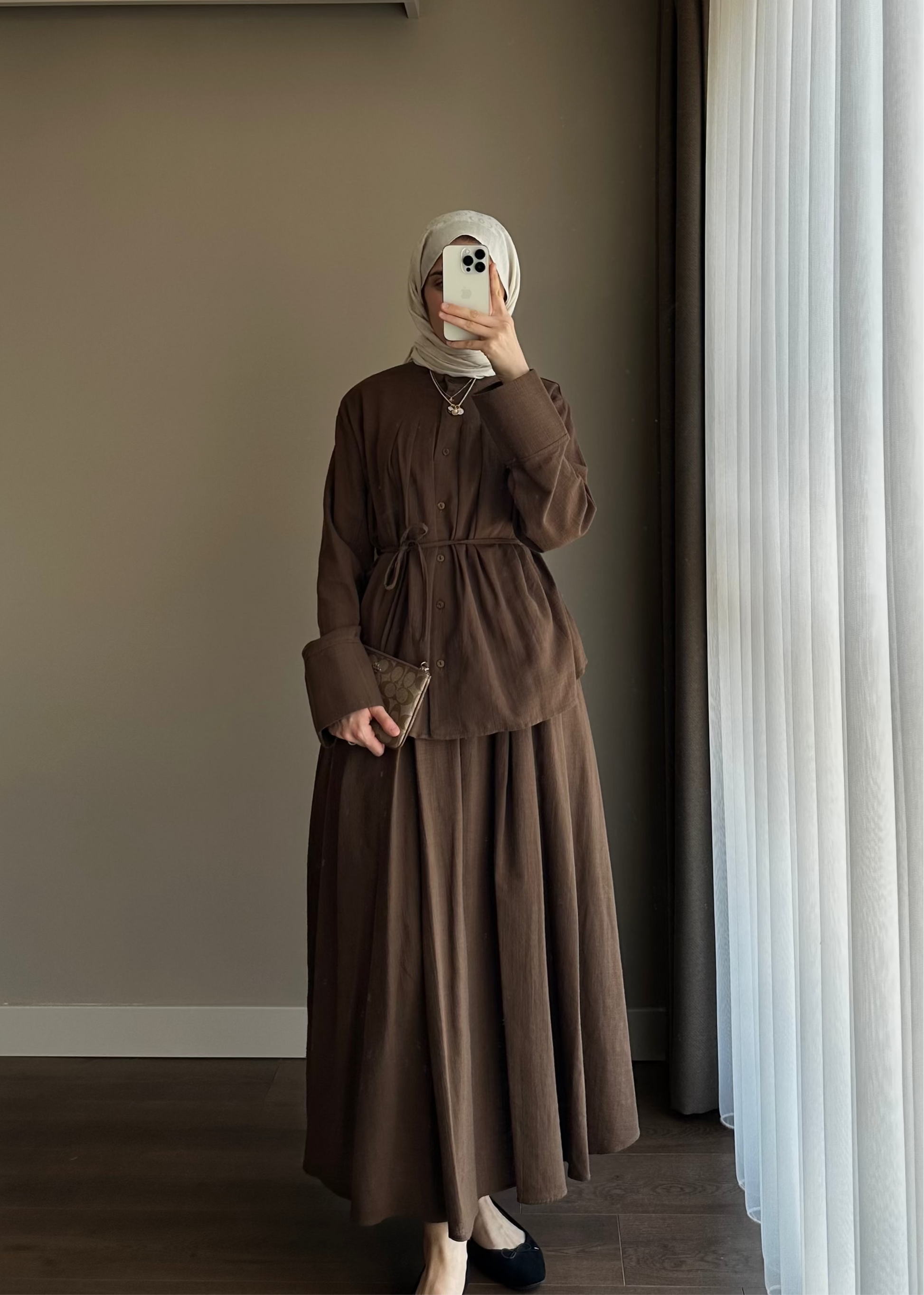 1 beden (CM) 2 beden (CM) 3 beden (CM) Bluz Göğüs 50 53 55 Bluz Boy 66 67 69 Etek Bel ( Lastikli ) 50 53 55 Etek Boy 94 94 94